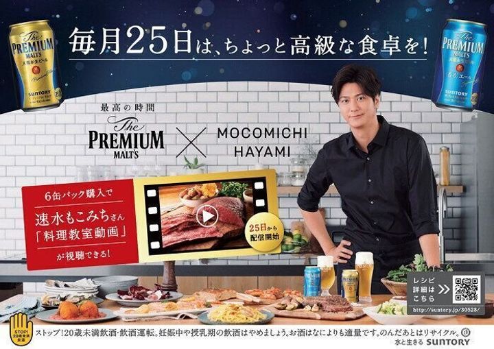 また、月末ご褒美レシピのコツ「速水もこみちさん料理教室動画」が見られるキャンペーンも同時開催中です。こちらの応募はプレモル6缶パックについているJANコードを入力してご応募を。