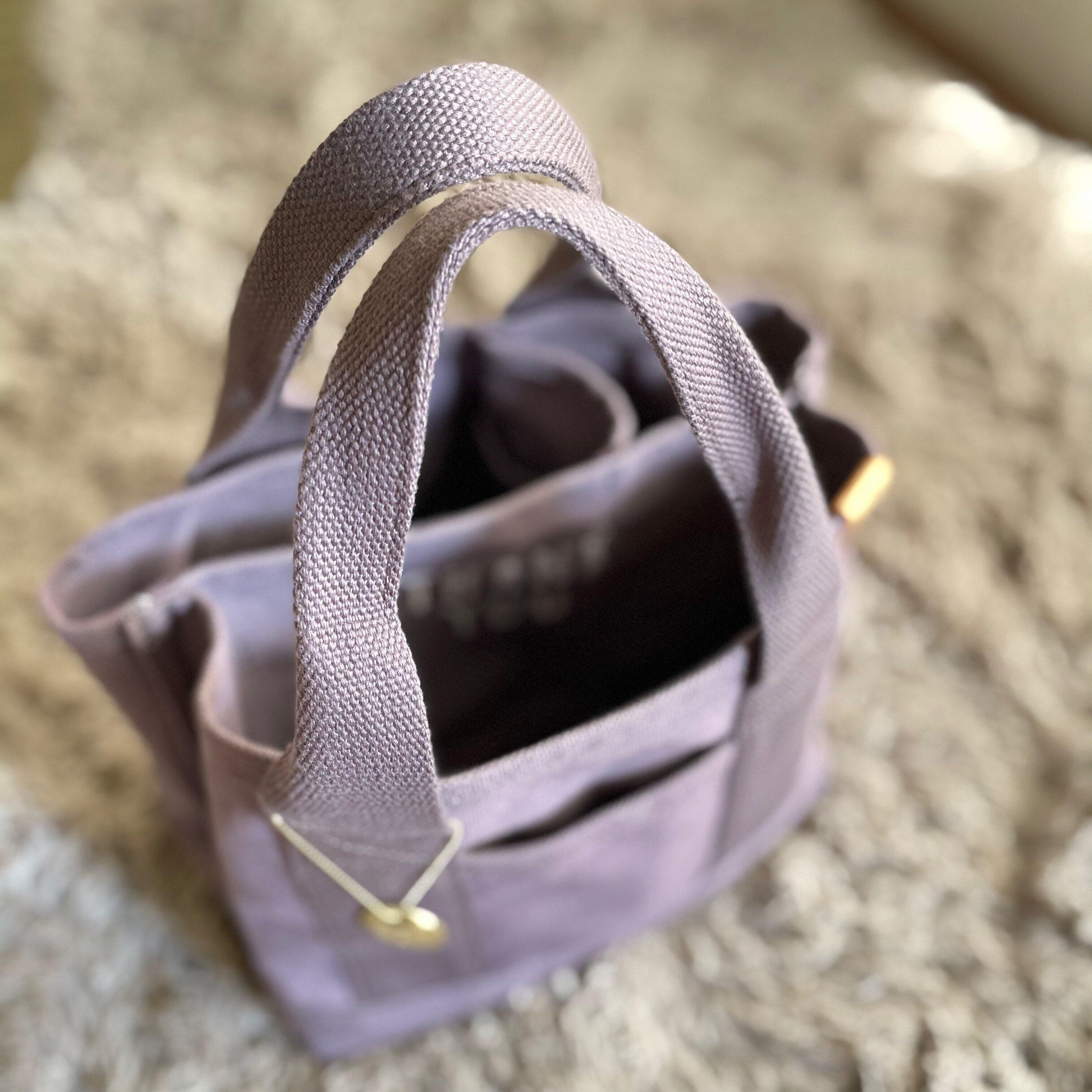 今までありそうでなかった、仕切り付きのトートバッグです。この仕切りがあることで、中身がグチャグチャになる事無く、立てて収納することができます。
