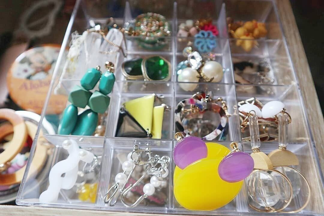 PSクリアケースの8分割タイプは、アクセサリー収納にぴったり。少し大ぶりなイヤリングやピアスを入れても余裕をもって収納することができますよ。種類ごとに分けて収納しておくと、どこに何があるのかパッと見てわかりやすく、取り出しやすいようになりますね。PSクリアケースは積み重ねることができるため、アクセサリーの種類が増えても安心。アクセサリー収納に悩んでいる人は、ぜひ試してみてはいかがしょうか。