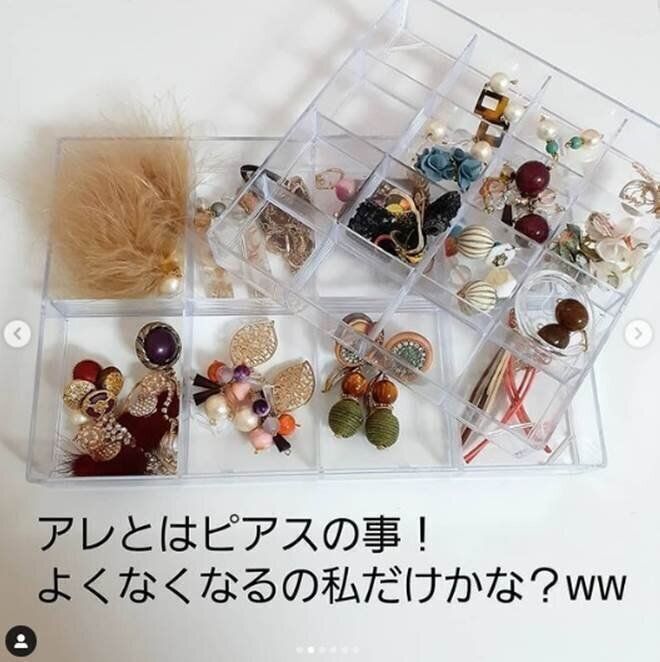 同じサイズのPSクリアケースを購入して、使う頻度に合わせて収納を変えるのもおすすめです。よく使っている1軍アクセサリーは取り出しやすいように1段目、たまに登場する2軍アクセサリーはホコリが入らないように2段目というアイデア収納で、大切なアクセサリーを保管。重ねてもしっかり安定感があり、100均とは思えないクオリティの高さにびっくりしますよ。