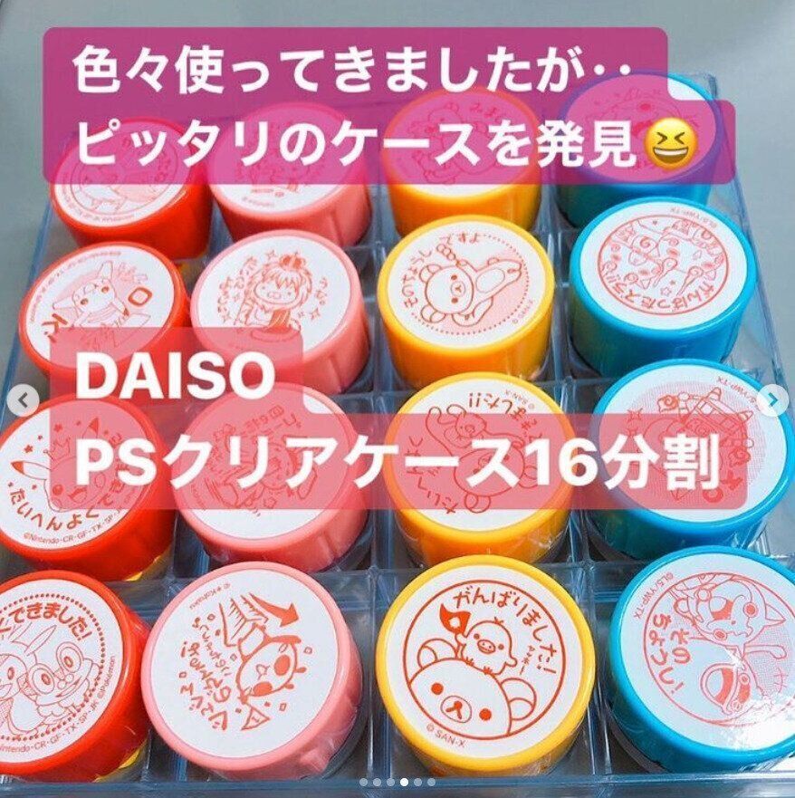 16分割タイプのPSクリアケースはスタンプ収納にもおすすめです!見た目も鮮やかでかわいらしく、ケースの厚みが丁度いいので取り出しやすいと評判ですよ。このまま引き出しに入れて収納OK!一目みて絵柄がパッと分かり、フタがないのでストレスフリーで使えます。