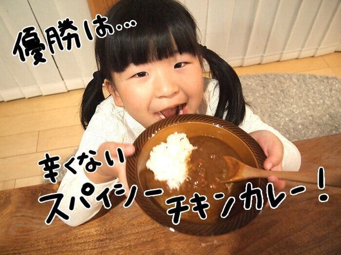 7歳が、今夜のご飯にと決めたのは「辛くない スパイシーチキンカレー」でした。総評としては「いや、全部おいしかったのよ。全部好きなのよ。ただこれは今日の気分だった。辛さはあるけど、全然だいじょうぶ」とのことです。