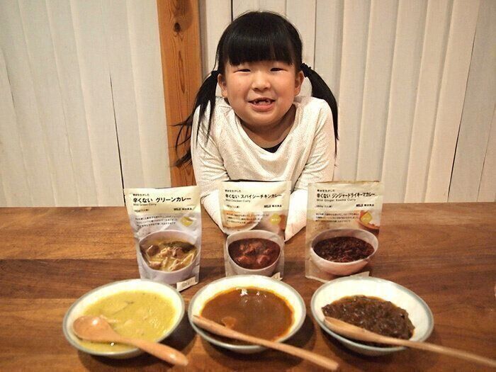これは子どもにももっといろいろな味を試してもらうチャンス!と思う一方、「本当に辛くないの?」という疑問も……そこで、とりあえず現在発売されている3品を購入。辛さに敏感なプロ(=子ども)に実食してもらい、辛くないかどうかの真偽をきいてみることにしました。