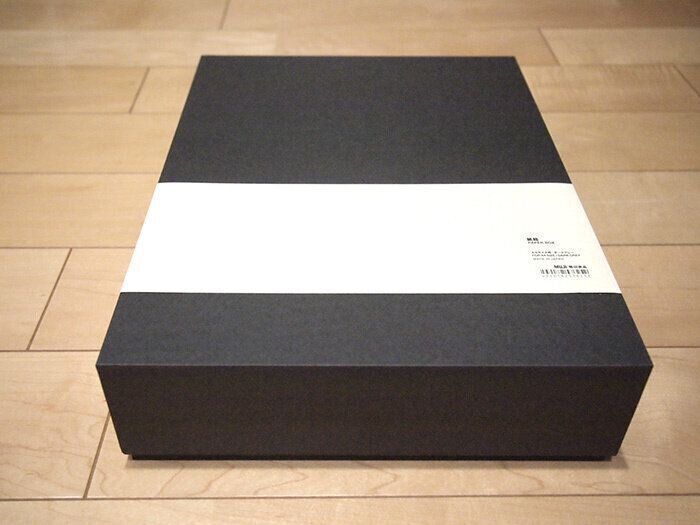 無印良品でとても素敵な箱を見つけました。まごうことなき箱です。「紙箱 A4サイズ用」はA4が余裕で入るサイズで690円です。色はベージュとダークグレー。これは実際に見てみるとわかるのですが、ものすごくきれいな箱なんです。