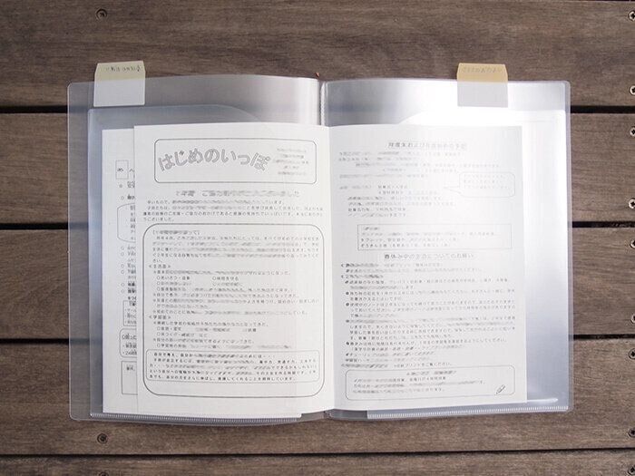 子どもの人数や、習い事の数だけ、スリムポケットホルダーは所持するといいと感じました。なお、似た名称で「携帯に便利なスリムクリアホルダー」というのもあるのですが、こちらはふつうに見開きできなく、片方ポケット側のホルダーになりますので、間違えないようお気をつけくださいませ!