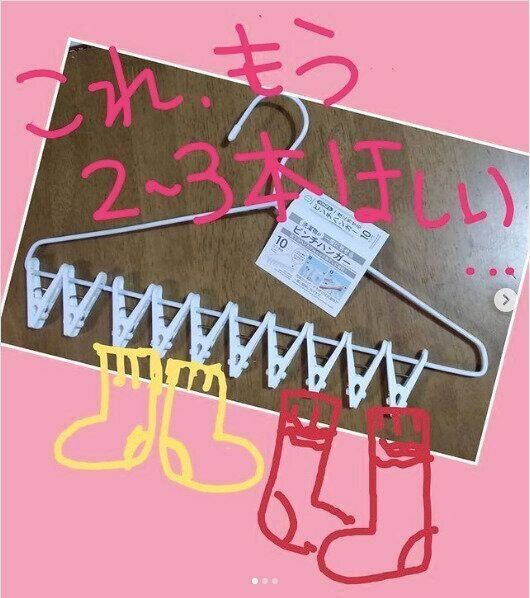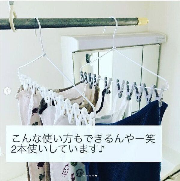 中には2本使いしてタオルを干しちゃう強者も!おうちに2〜3個常備しておくと、アイデア次第で様々なものを干せちゃいますね。