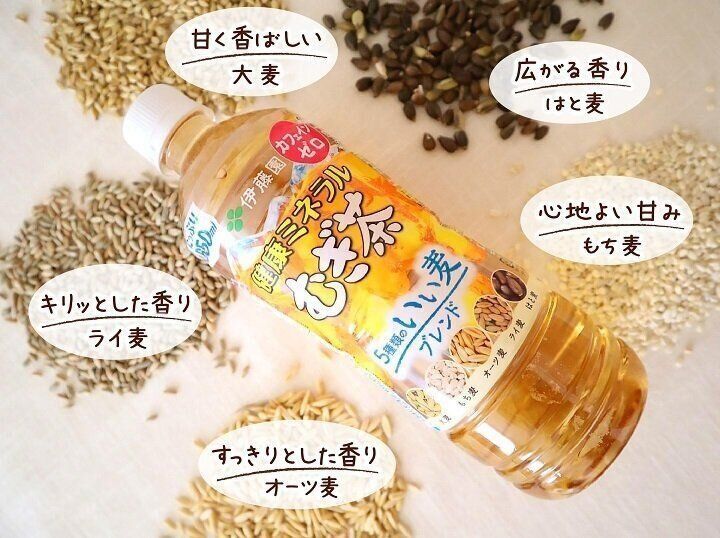 5つの麦のおいしさが楽しめる「健康ミネラルむぎ茶 5種類のいい麦ブレンド」もオススメ。
