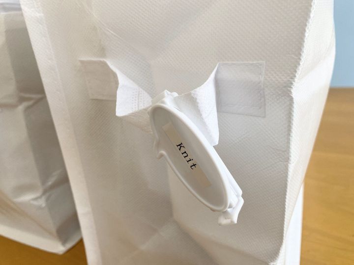 吹き出しのような形のかわいいクリップに中身にあわせて書き込みしたら、バチっとはさむだけなので簡単です。
