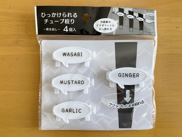 今回はキッチン用品の「ひっかけられるチューブ絞り」(価格110円〉を使いました。