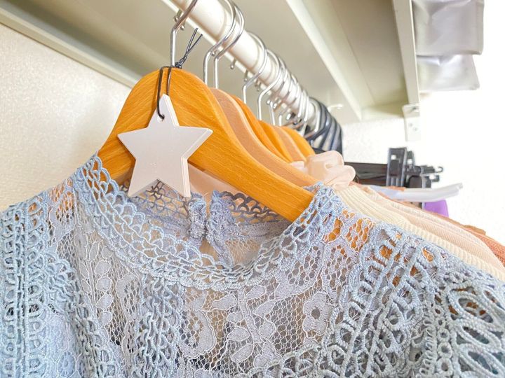 長いポールがあり家族共通で使うファミリークローゼットには、このオーナメントを吊るして、使う人別の仕切りがわりにも使えます。100均でそろうグッズでファッションを楽しみながら管理がラクなクローゼットをつくりましょう。