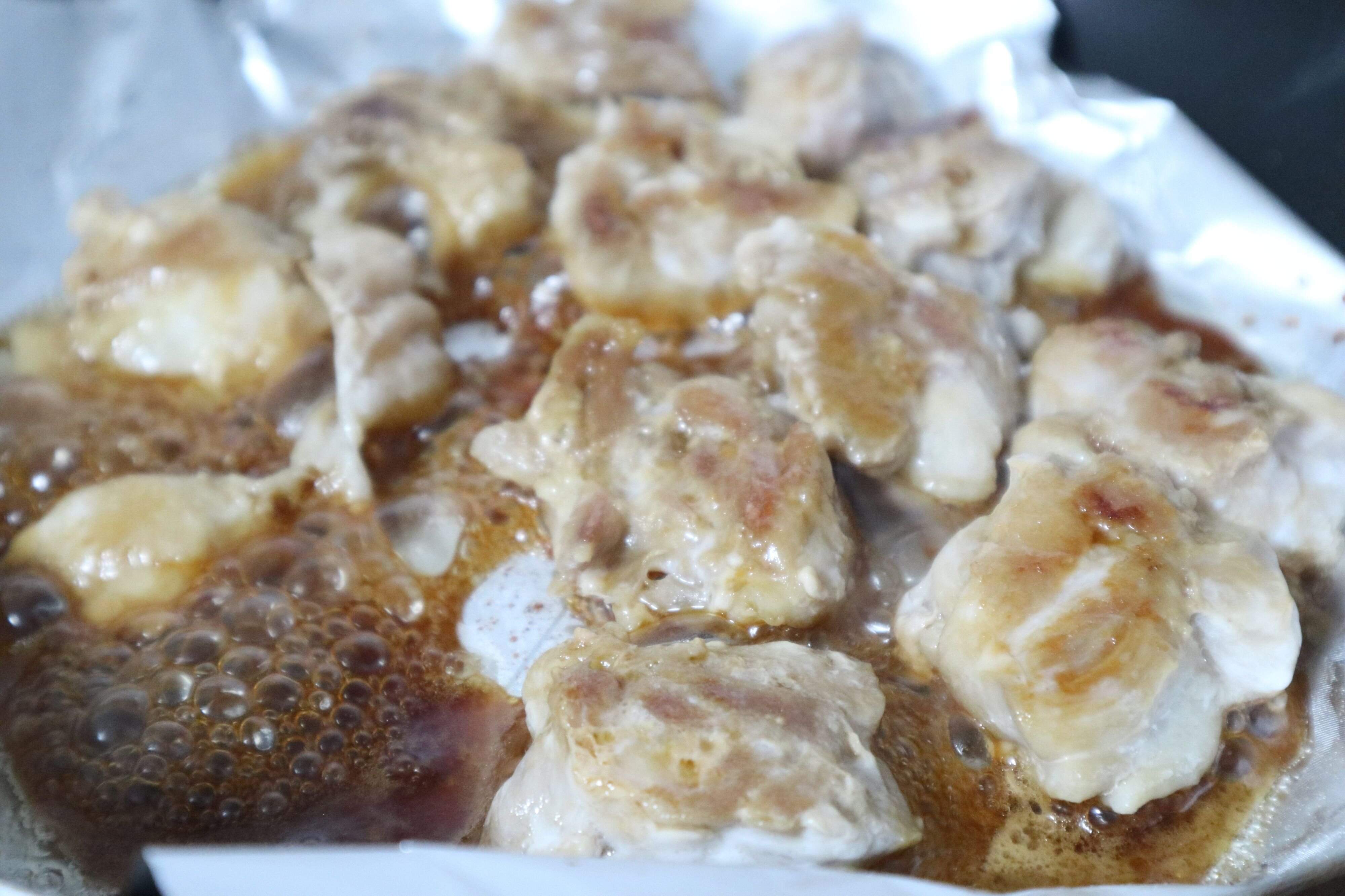 鶏の照り焼きなどの調味料を煮詰めて照りを出すような料理もそのあとの洗いものが一仕事ですよね。テフロン加工のフライパンだとあまりこすりたくないし……フライパン用のアルミホイルを使えばその心配も無用です。