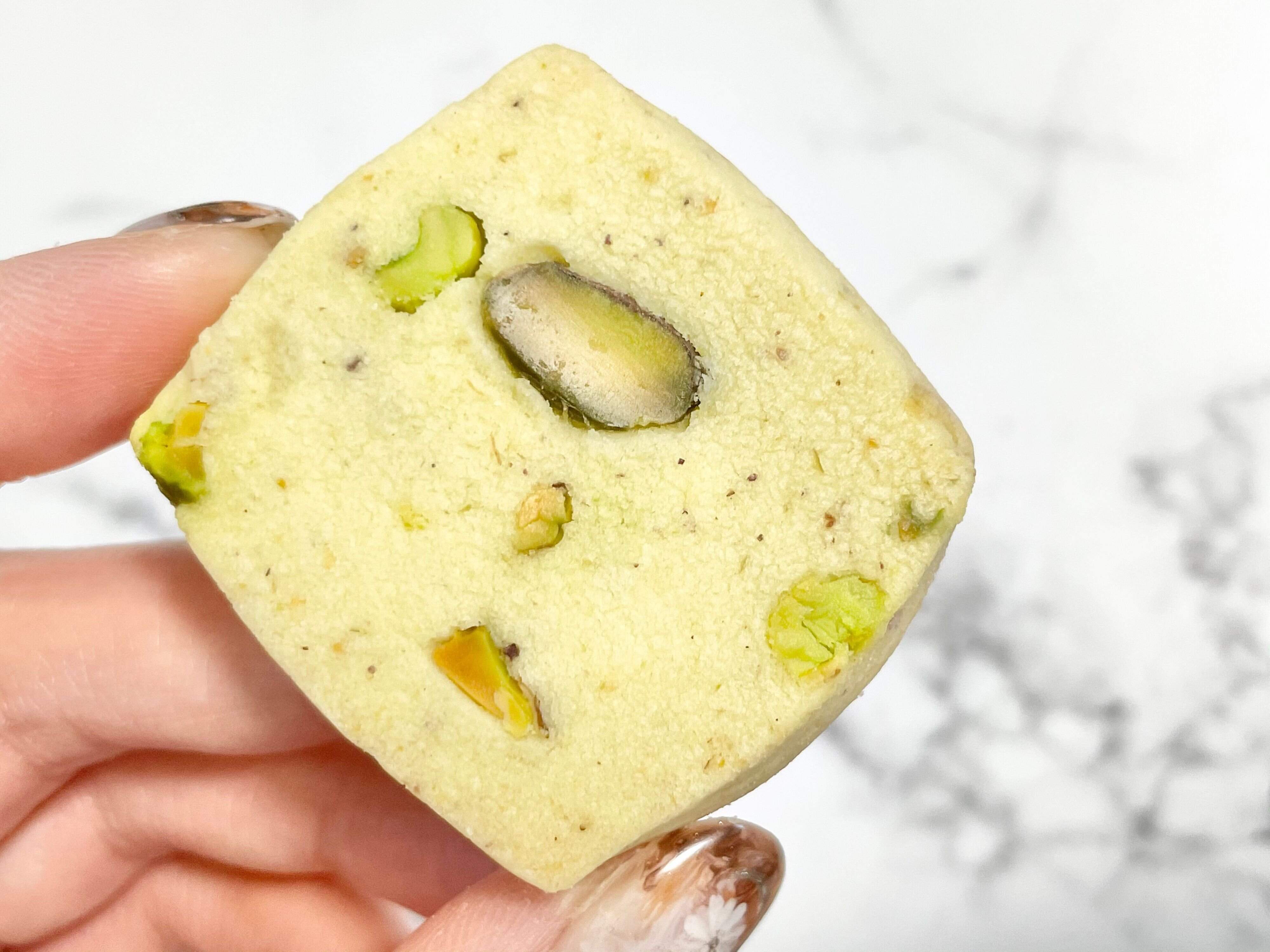 サクサクほろほろっとした生地です。噛めば噛むほどピスタチオの風味がひろがります。