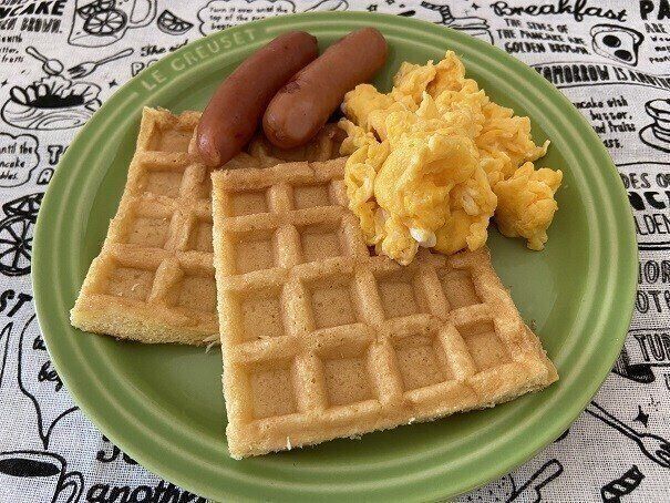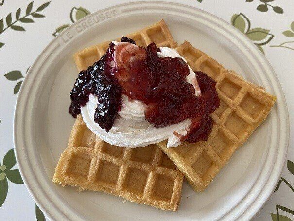 ワッフルは自然解凍でそのまま食べられますが、トースターで軽く焼いてから食べるのがおすすめ!表面はさくっと中はふんわりしてとても美味しいです。