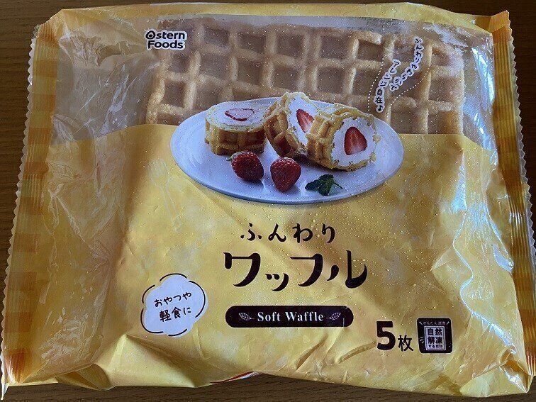 こちらは新商品の冷凍商品「ふんわりワッフル」!大判で少し薄めのワッフルが5枚入っています。