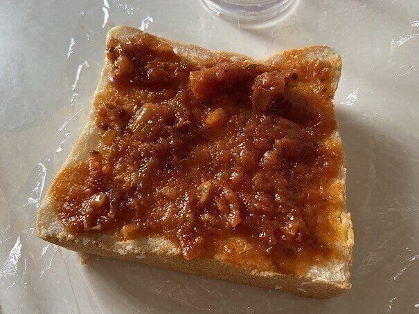 我が家のお気に入りの食べ方は、パンに合わせてピザ風にすること。