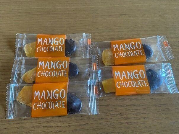 ドライマンゴーにチョコレートがコーティングされたお洒落なお菓子!