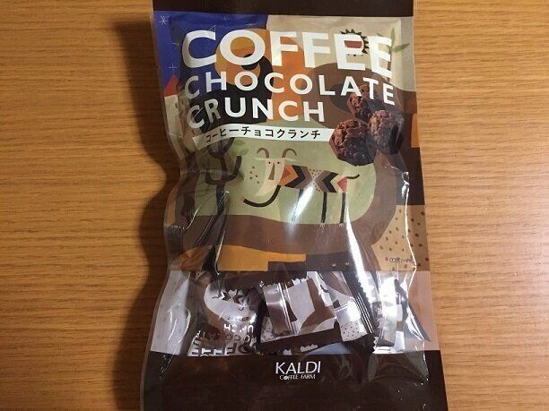 カルディで人気のコーヒー豆「マイルドカルディ」が粗挽きで入ったチョコレートクランチ。個包装で15個入っています。