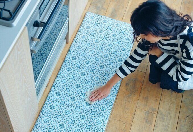 「お手入れ簡単 水拭きできる キッチン用クッションフロアマット(タイル BL)」(幅45×奥行き120cm)¥1,719
