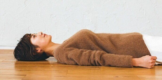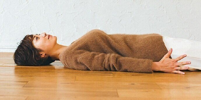 あおむけ状態で、片手ずつグッと握ってふわっと力を抜くと、筋肉がゆるみ、血流がアップ。足の指も同様にグッ→パーをすると、腸まで温まって心地よい眠りにつけます。