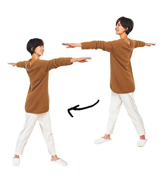 便秘やガスだまりなどの不調があるときは、腸がねじれている可能性が。両腕を広げ、上体を左右にひねる動きを1日3回行い、腸を正しい位置に戻しましょう。