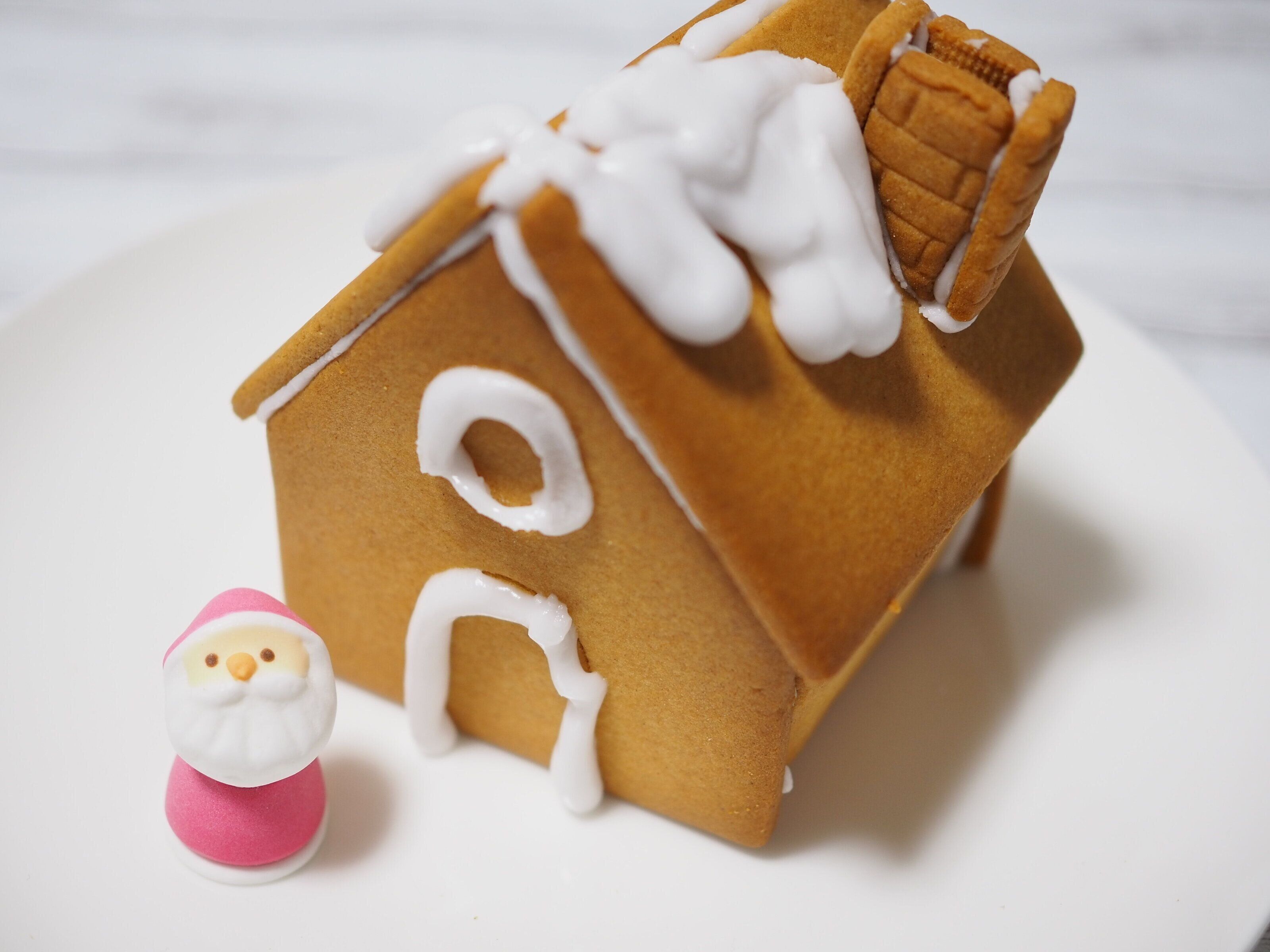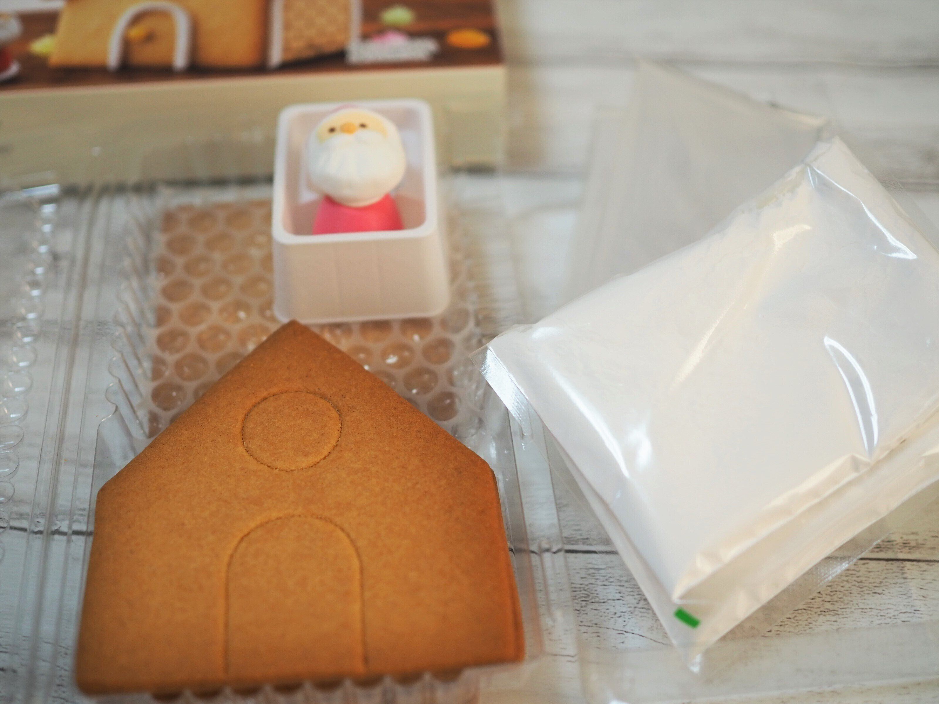 焼いたバニラ味のクッキーパーツ、アイシングパウダー、絞り袋、サンタの砂糖菓子をセットにしました。アイシングをつくり、クッキーを組み立てお好みのデコレーションをして、手軽にヘクセンハウスがつくれます。