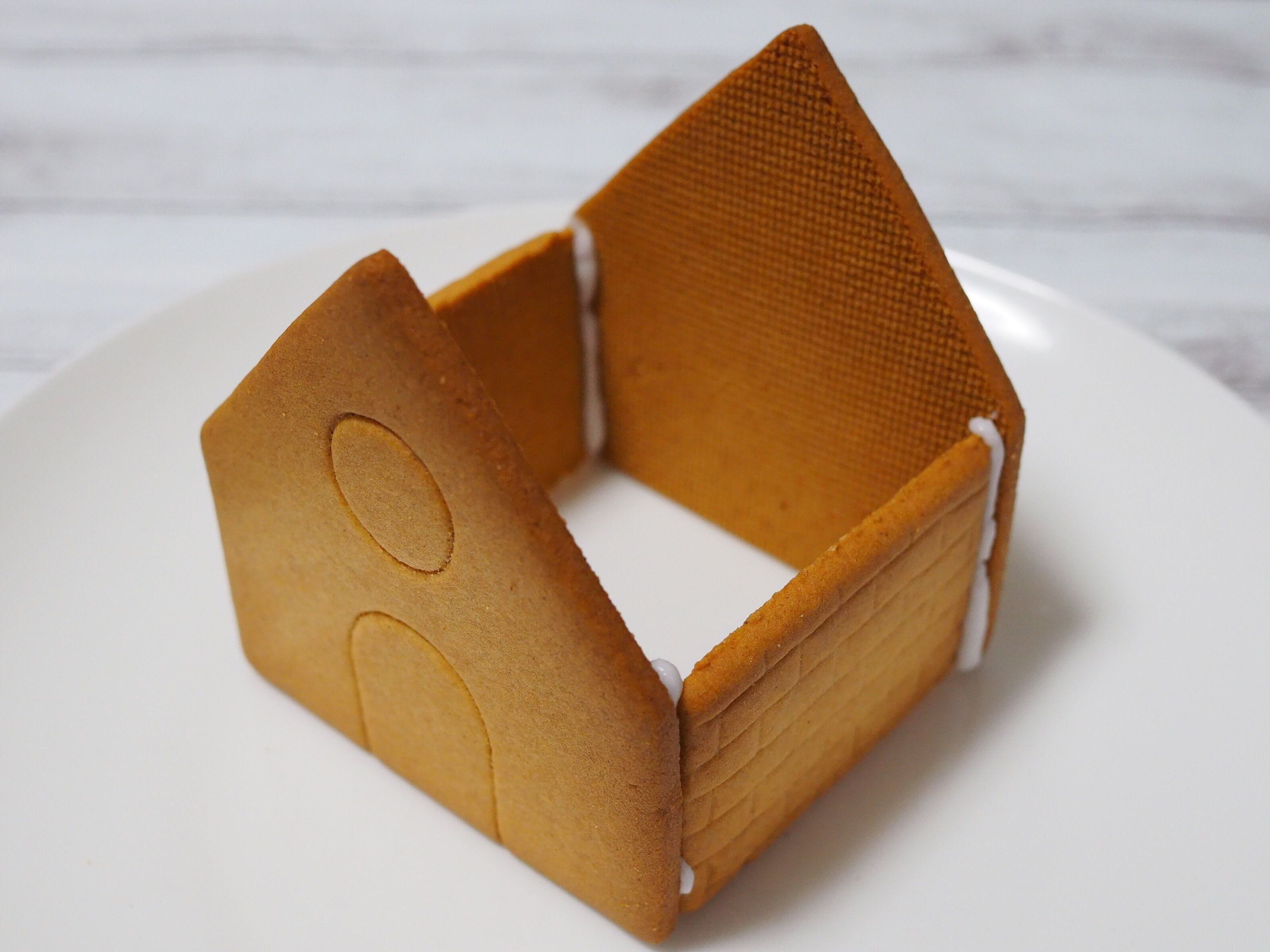 途中、何度か崩壊しながらも家の外壁が完成!アイシングがガタガタなのは、気にしないことにしました。