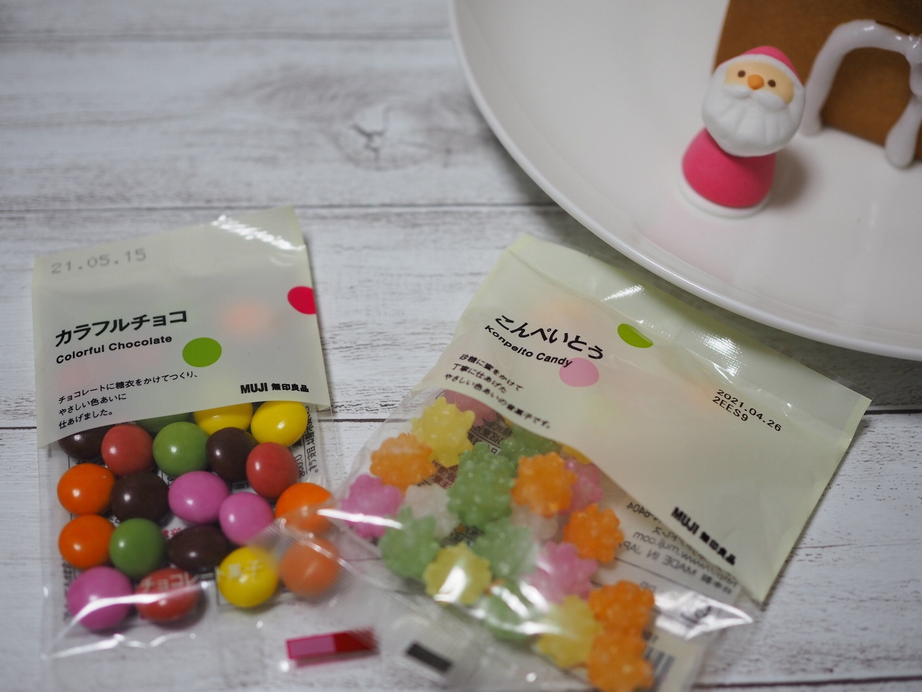 そこで、飾り付け用に無印で買っておいたお菓子をトッピングしていきます。