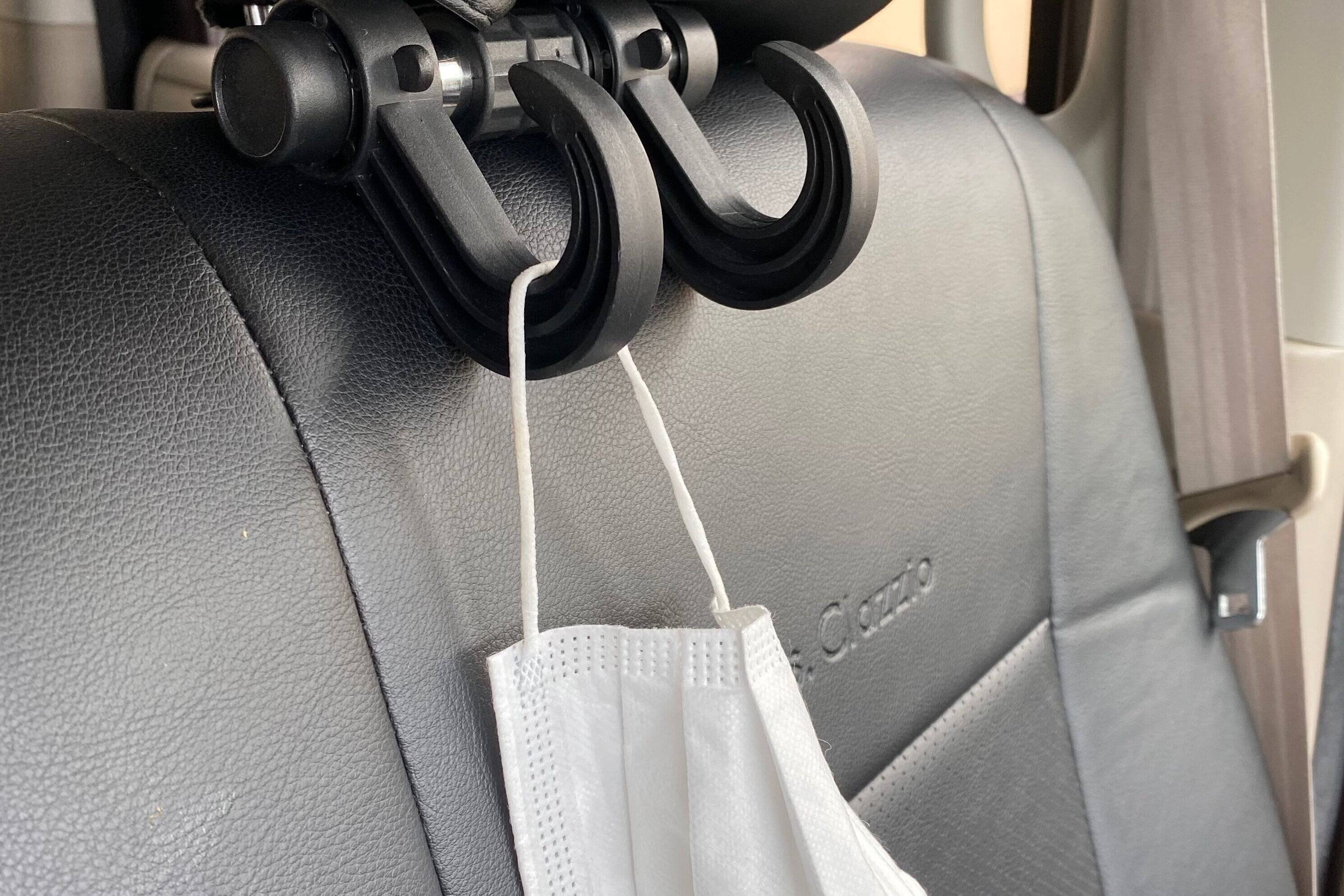 車内のマスク置き場の定位置作りに役にたったのが、DAISOのシートフックです!