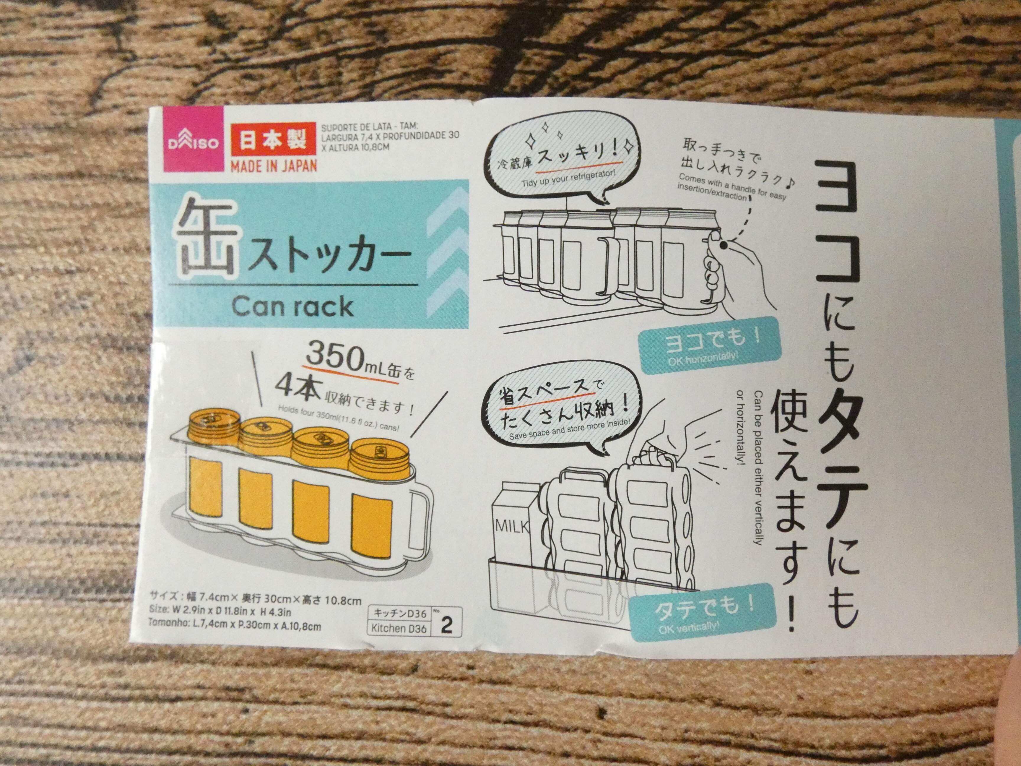 100円ショップで見つけたのは「缶ストッカー」です。350ml缶を収納するためのグッズで、4本をスッキリまとめられるんです。