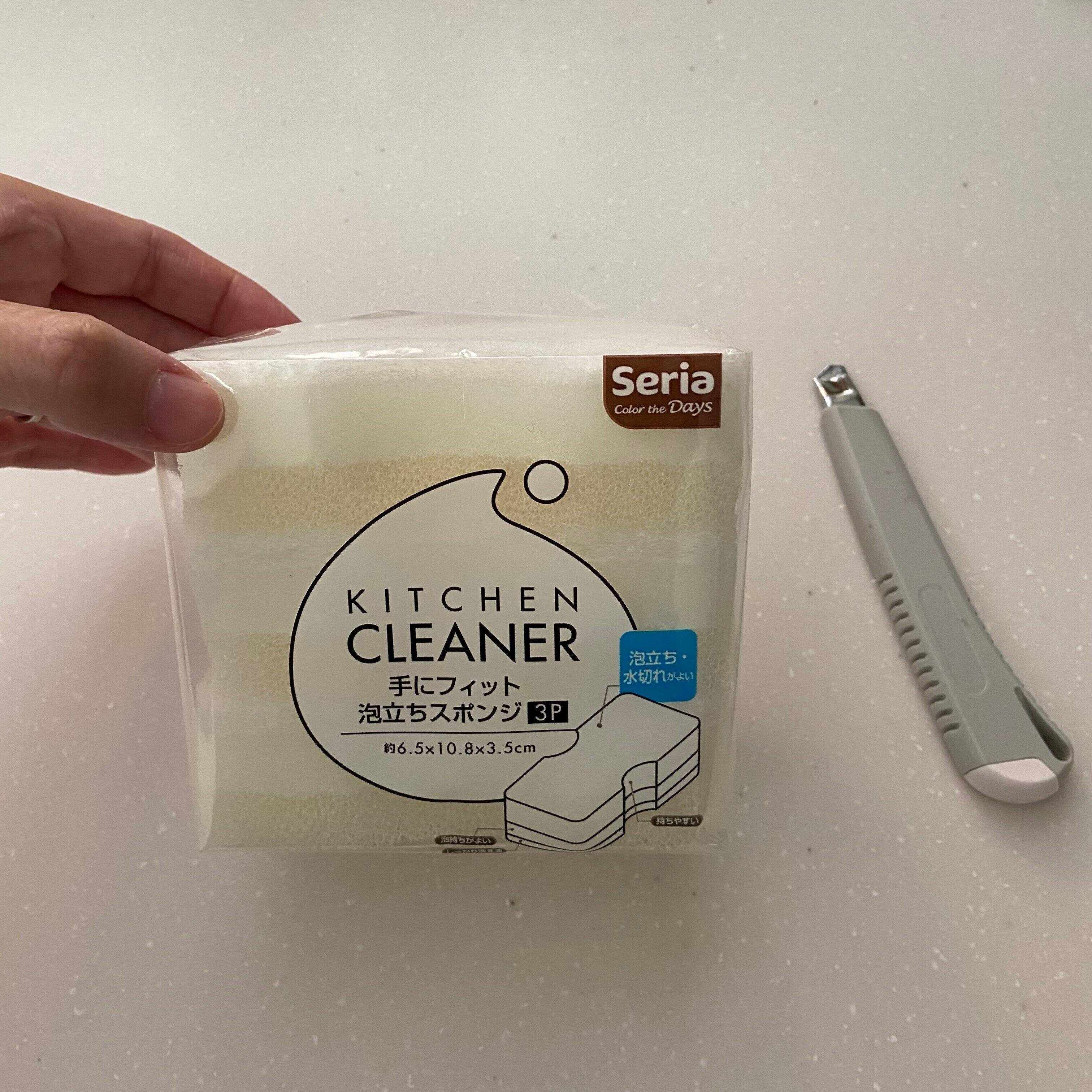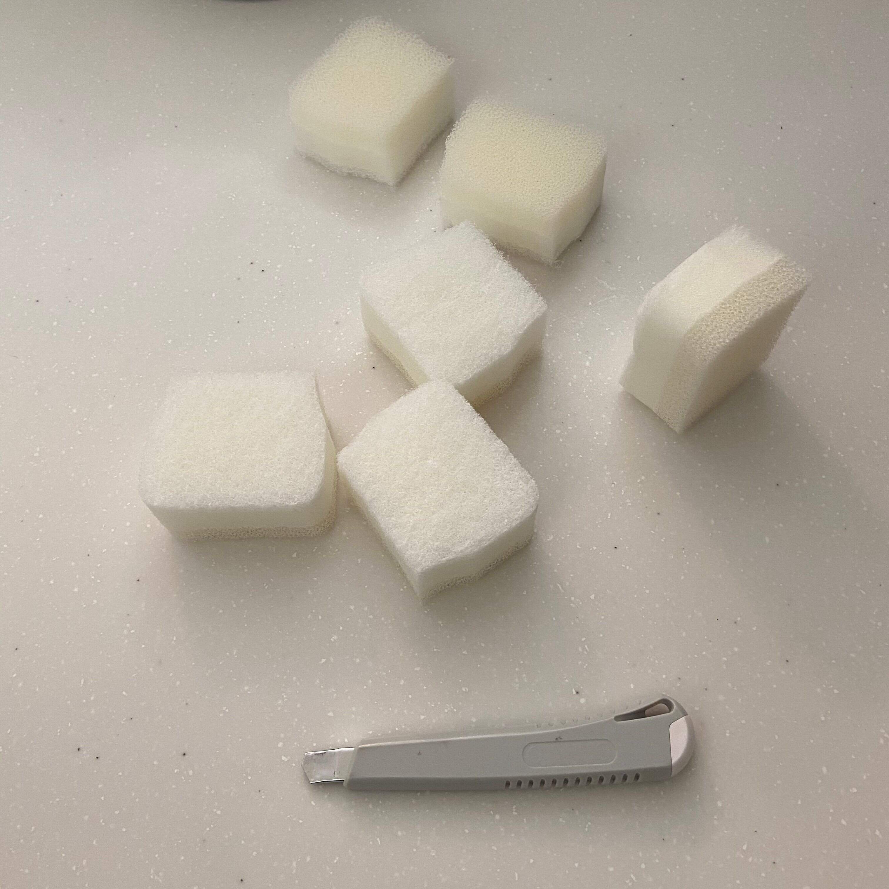 半分にカットして使っています。汚れを落とすためのスポンジは、定期的に交換して衛生的に保てるよう、数が多い方が嬉しいです。少し小さめのサイズ感がとても使いやすいです。