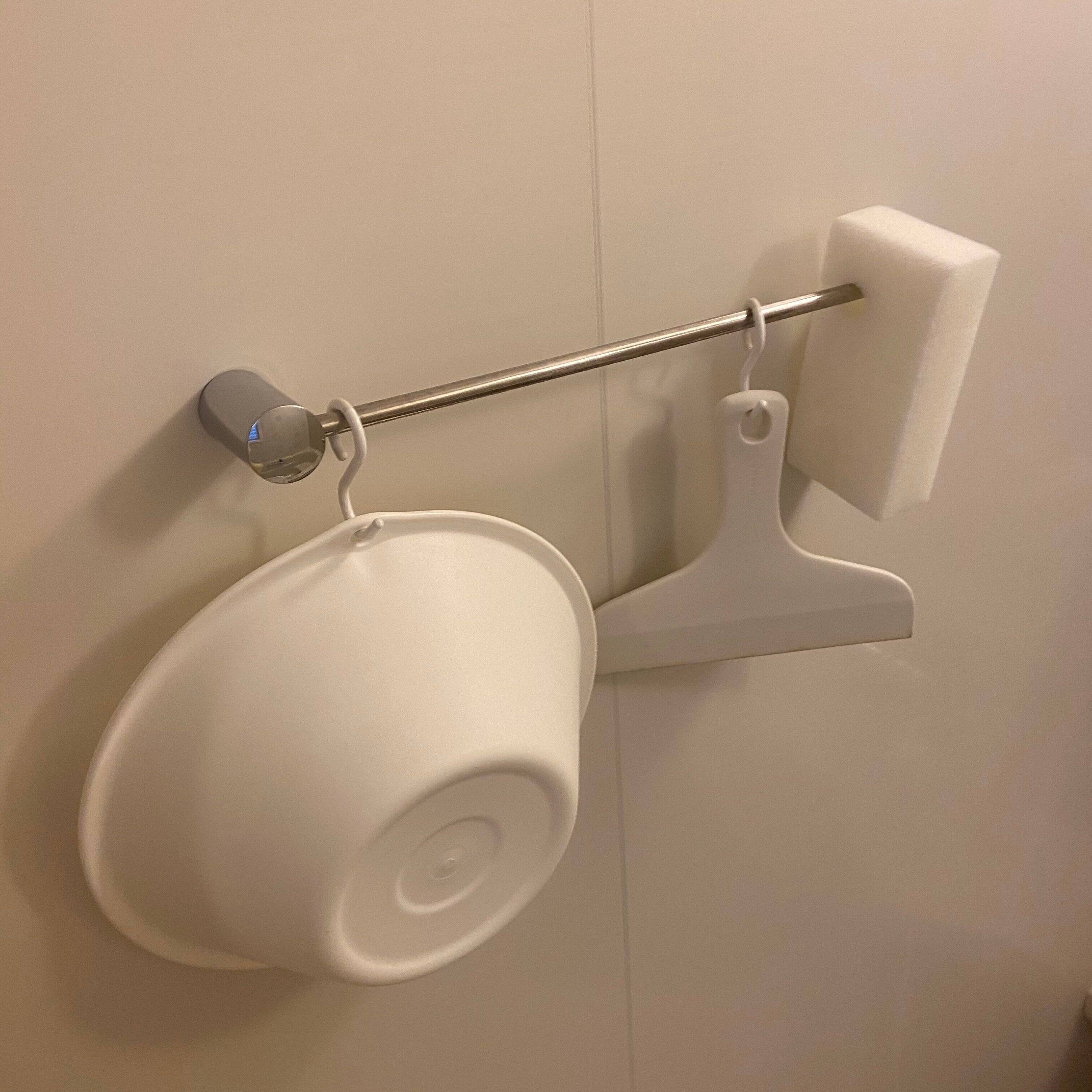 切り込みが入っているので、収納する時はタオルバーに引っ掛けています。