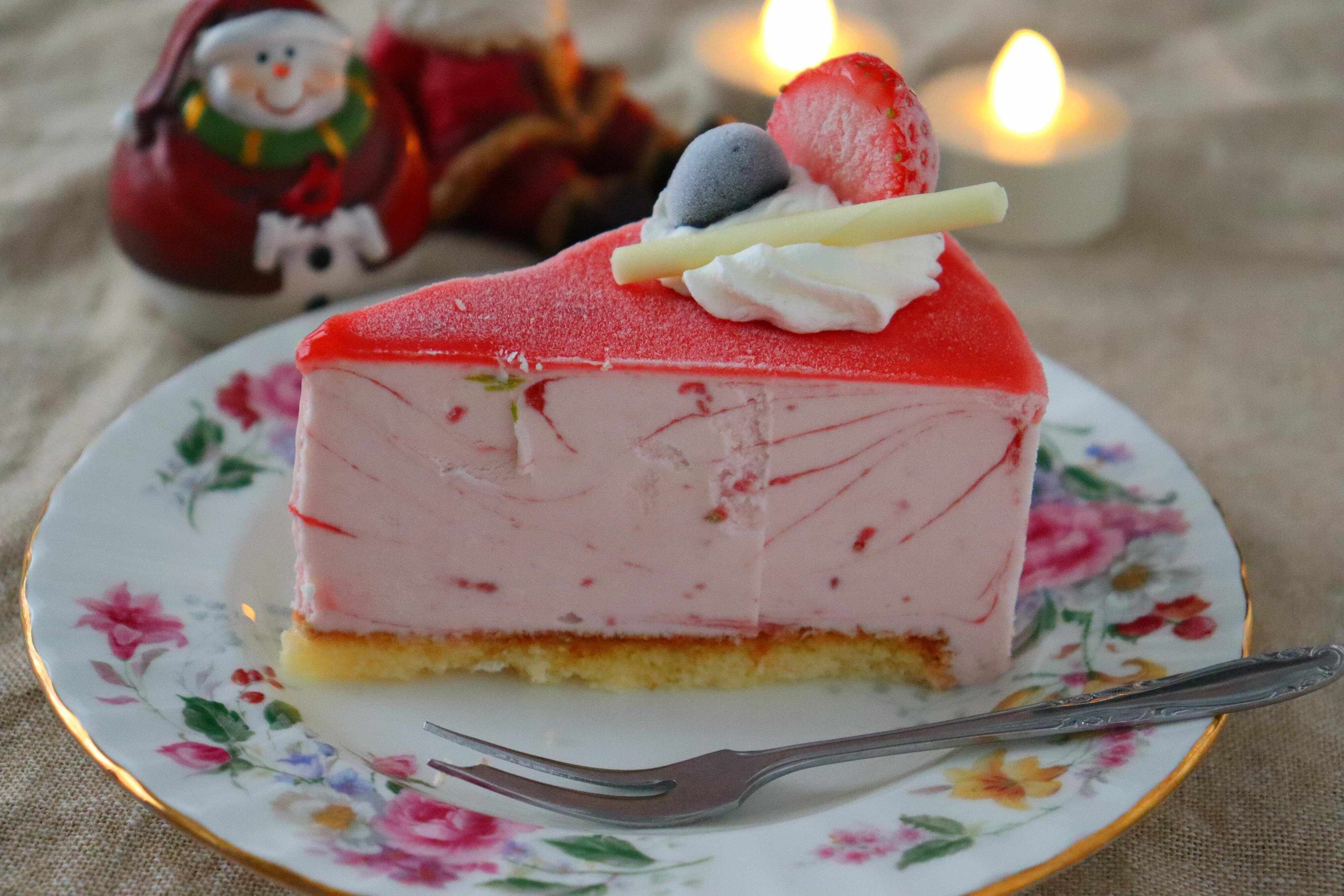 ケーキって、少人数で食べる場合は余りがちですよね。でも、これはアイスケーキだから、冷凍庫に入れれば大丈夫です。鮮度がいいうちに、なるべく早めに食べてくださいね。