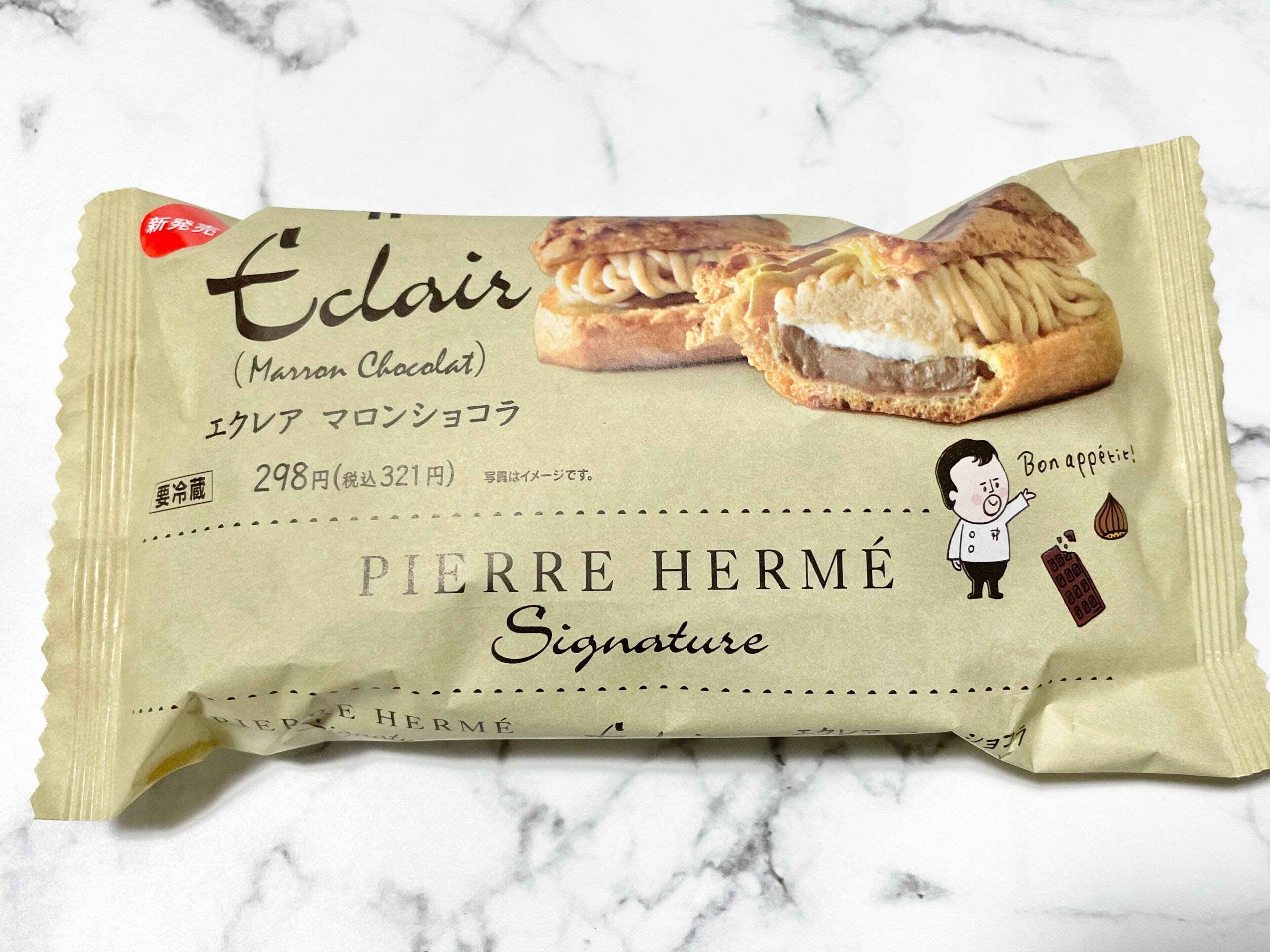 セブンイレブン各店で、ピエール・エルメとコラボレーションしたスイーツ「ピエール・エルメ シグネチャー エクレア マロンショコラ」が順次発売されると知り、早速買ってみました。