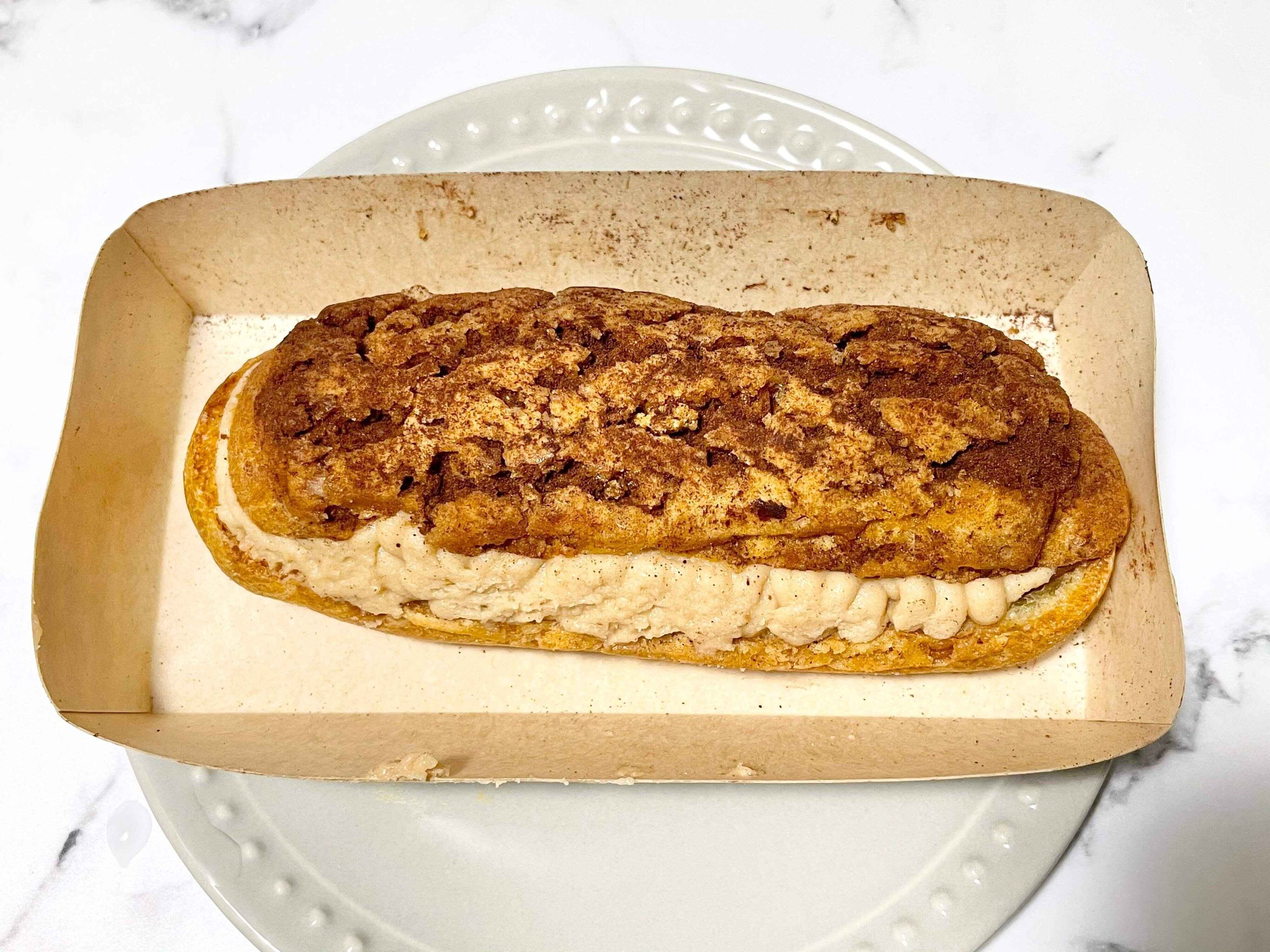 食べてみると、シュー生地が少しパサつきますね。中のクリームが入って混ざると気になりませんがちょっと残念。