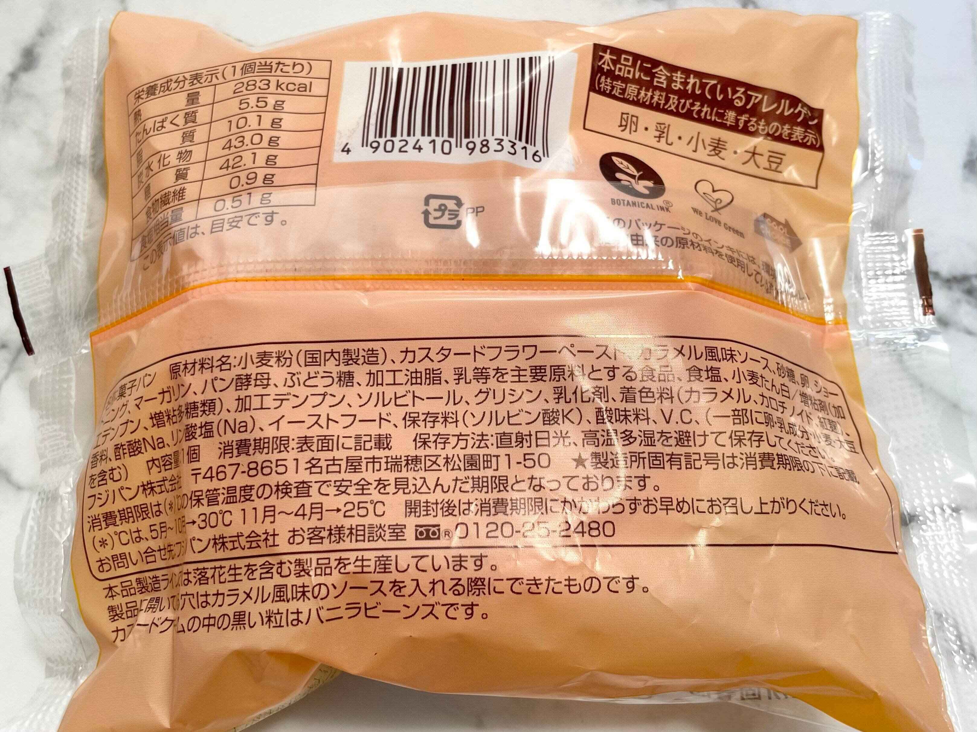 袋から出すと上部にキャラメルソースがかかったプリンにそっくり。表面はツルツルとしています。
