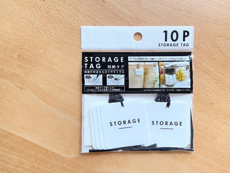 セリアーのモノトーンの収納タグ。ラベルが貼れない収納ケースに使える便利アイテム。素材はプラスチックでしっかりしているので紙製のものと違って悪くならないのもお気に入りのポイント!