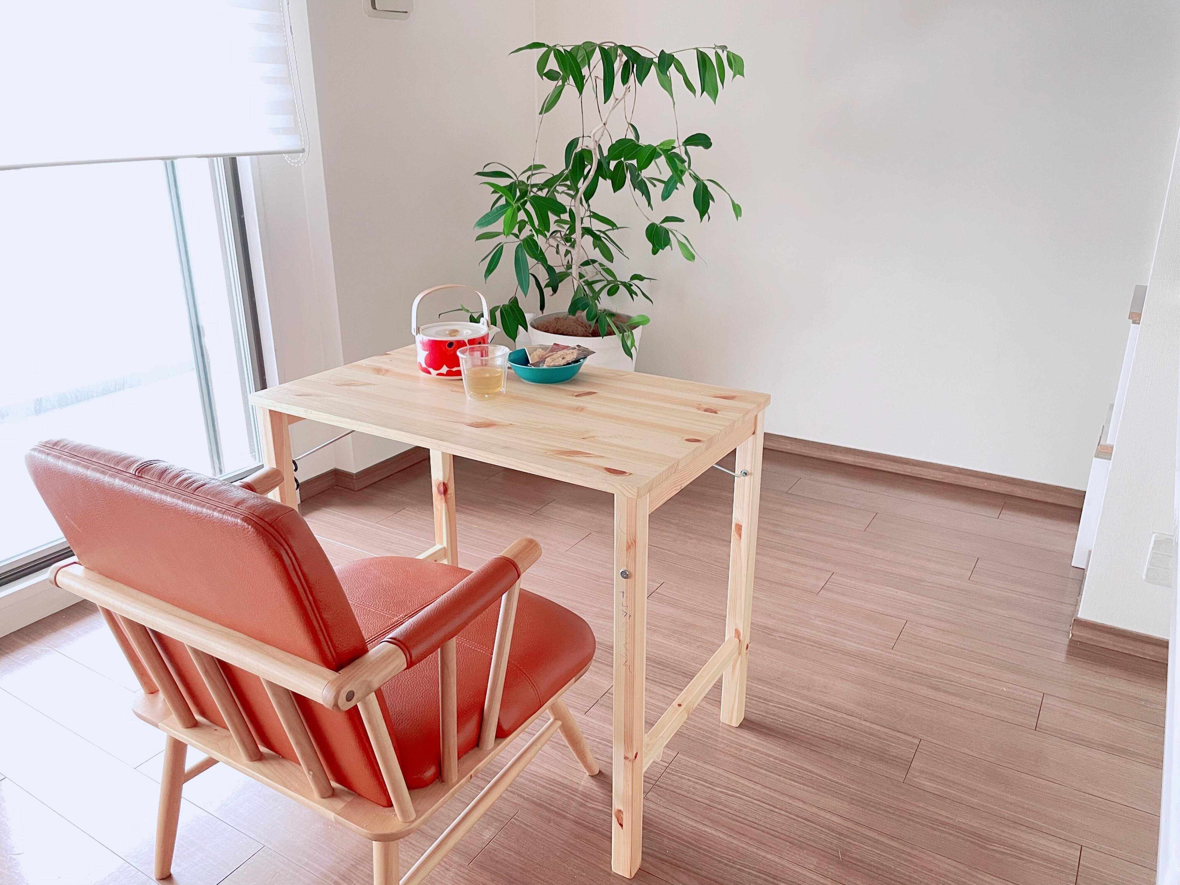 幅は2倍になりましたが、作業スペースが十分とれるようになり、この場所でスツールを持ってきてコーヒータイムをすることも増えました。