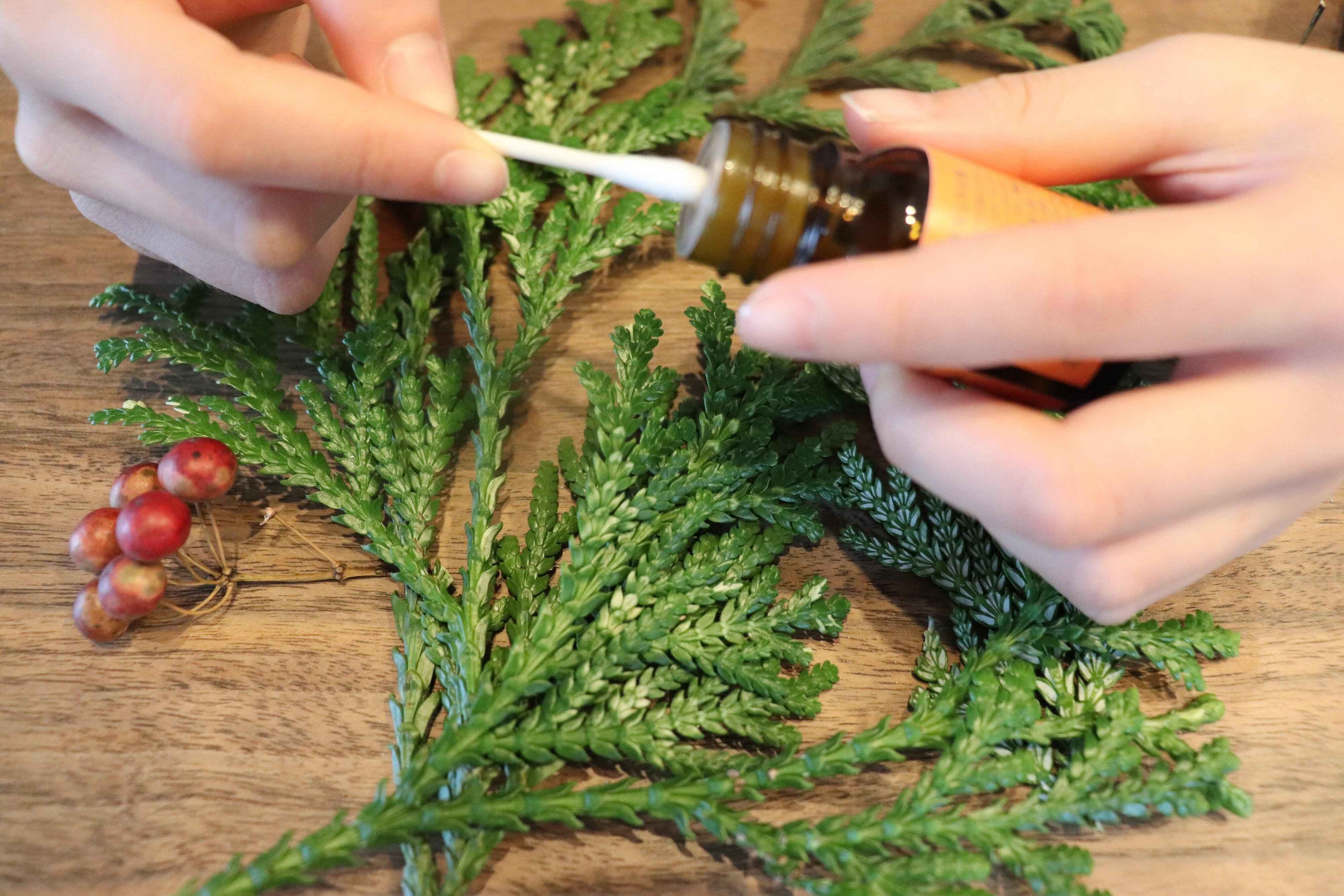 使い方は簡単!まず、めん棒でお好きなエッセンシャルオイル(精油)を吸い取ります。