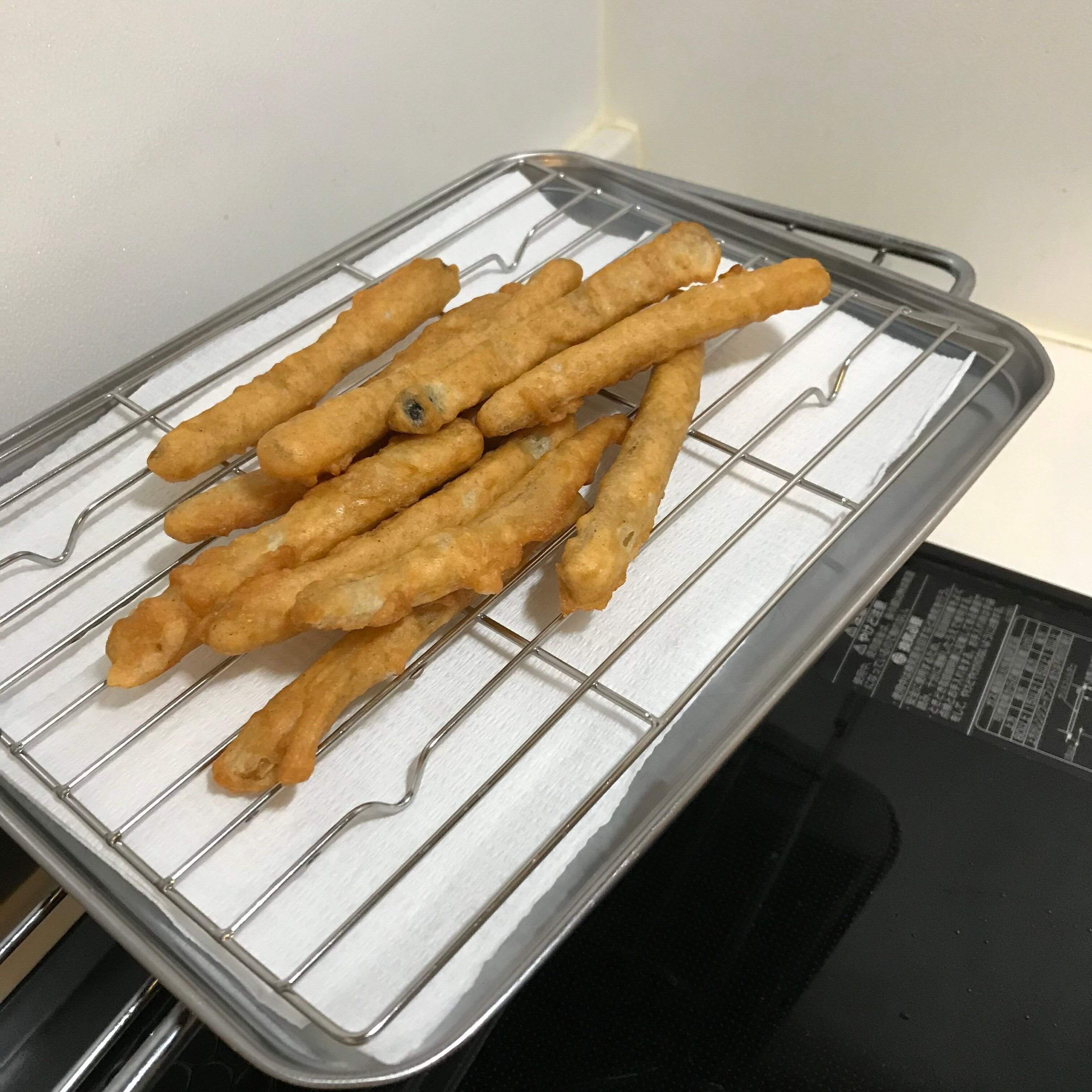 まずはごぼうの唐揚げから。500gも入って袋も大きいので買うのに躊躇しちゃいそうですが安心してください。揚げ物するたびにちょこちょこと「ついで揚げ」してたらあっという間になくなります。