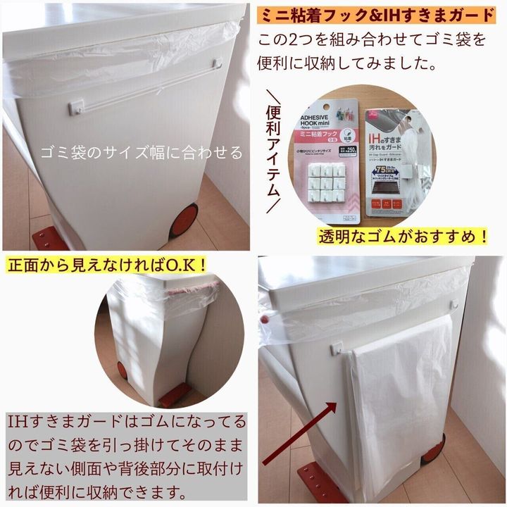 IHすきまガードは伸びるゴム製になってるので、ゴミ袋が引っ掛けやすい!また、透明なので目立たないのが特徴です。