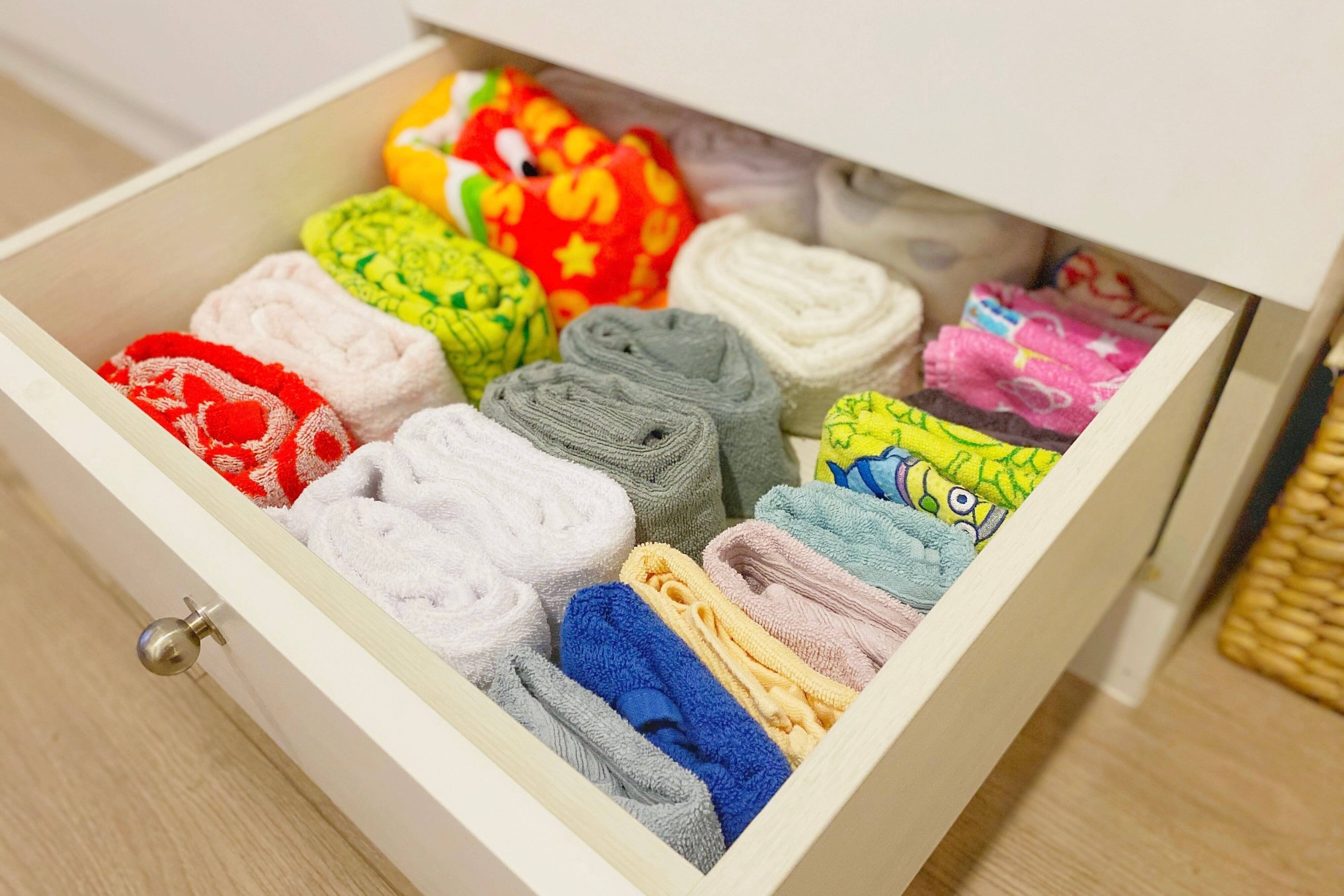 我が家には頂き物のタオルが大量にあります。なんと引き出し1.5段分にぎっしり詰まっています。これを一年で使い切るのは難しいので【今年使う枚数を決めて】一番下の引き出しに収納することにしています。年が明けたら上段のタオルを下段に移動させて一年間使い倒します!ちなみにハンカチなどの共有ではないタオル類は家族個人の物なので手放す基準は異なります。