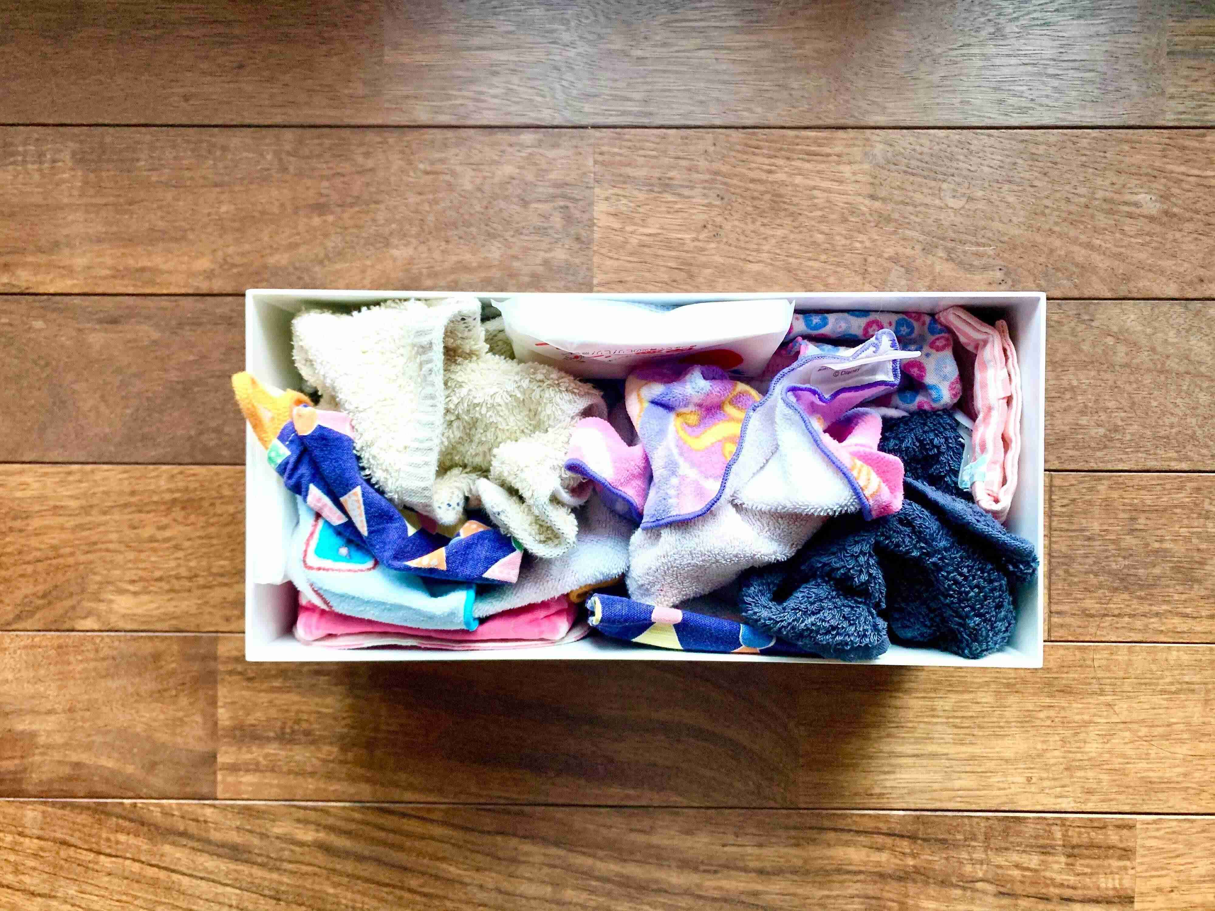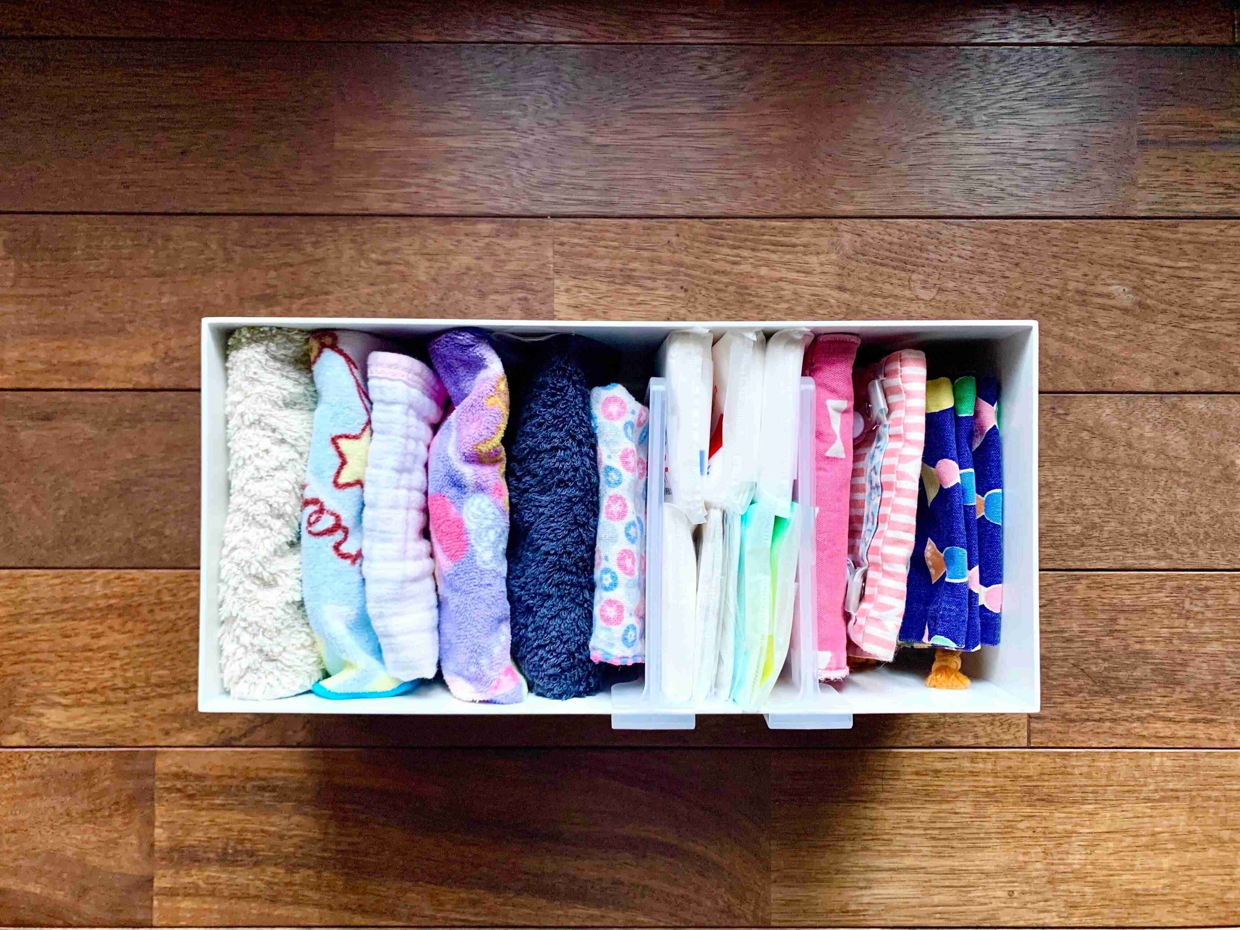 先ほどごちゃごちゃしていたタオルやティッシュも、この仕切りを使って種類別に仕切ると、種類別で混ざらないですし、ごちゃごちゃにもなりません。