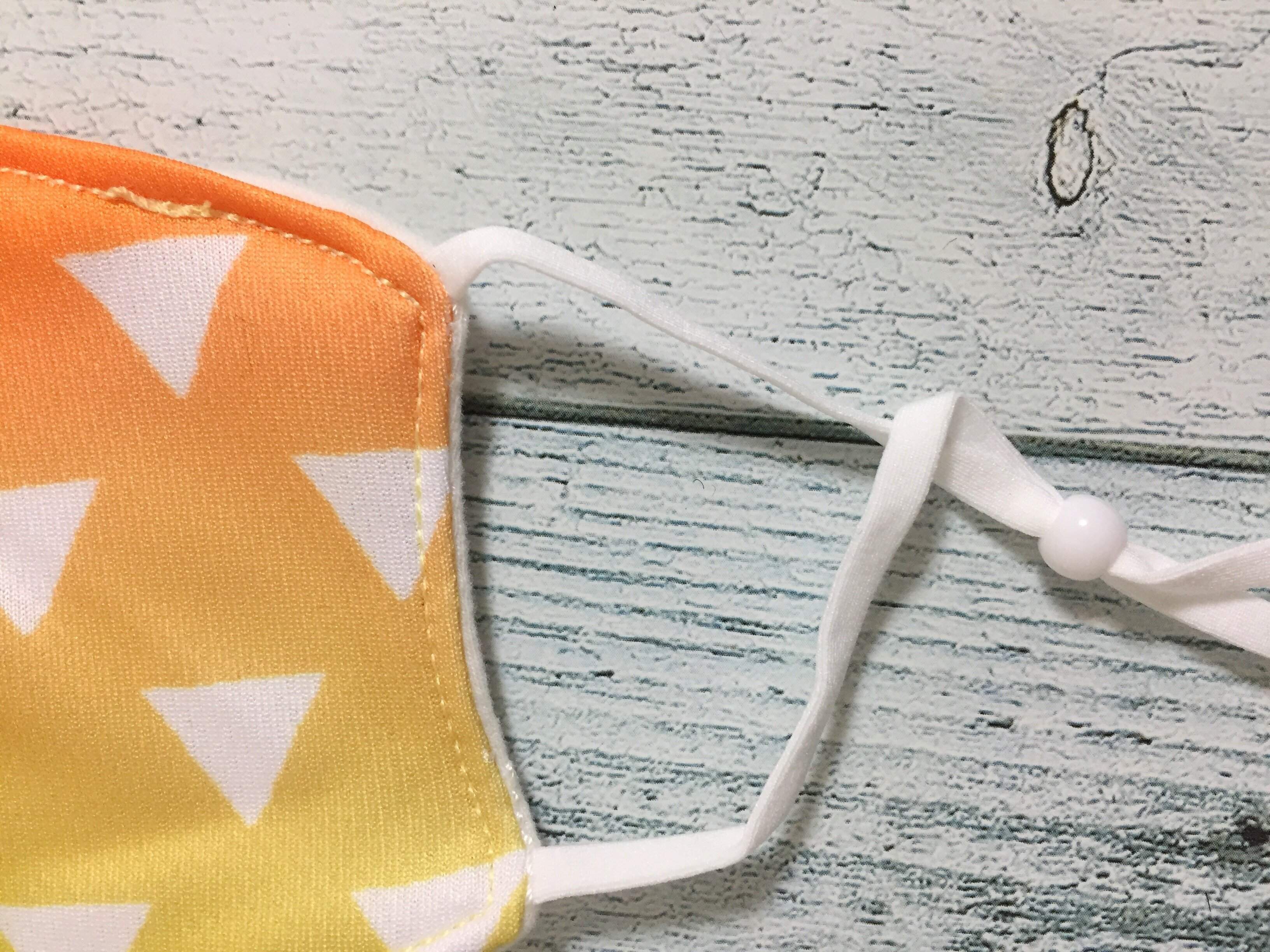 耳ひもは長さが調節できるので耳が痛くなりにくいデザイン。筆者は子ども用に購入したのですが、学校などは長時間マスクを着用するので耳ひもが調節できて耳が痛くなりにくいのはとてもありがたいデザインです。