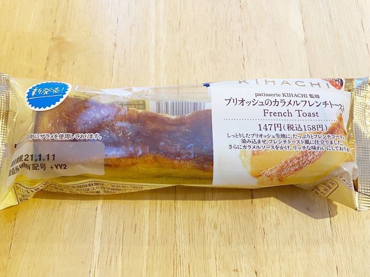 「patisserie KIHACHI」監修商品。ブリオッシュ生地にフレンチ液をしっかりとしみ込ませ、カラメルソースをかけて焼きあげたフレンチトースト。価格は158円(税込)です。