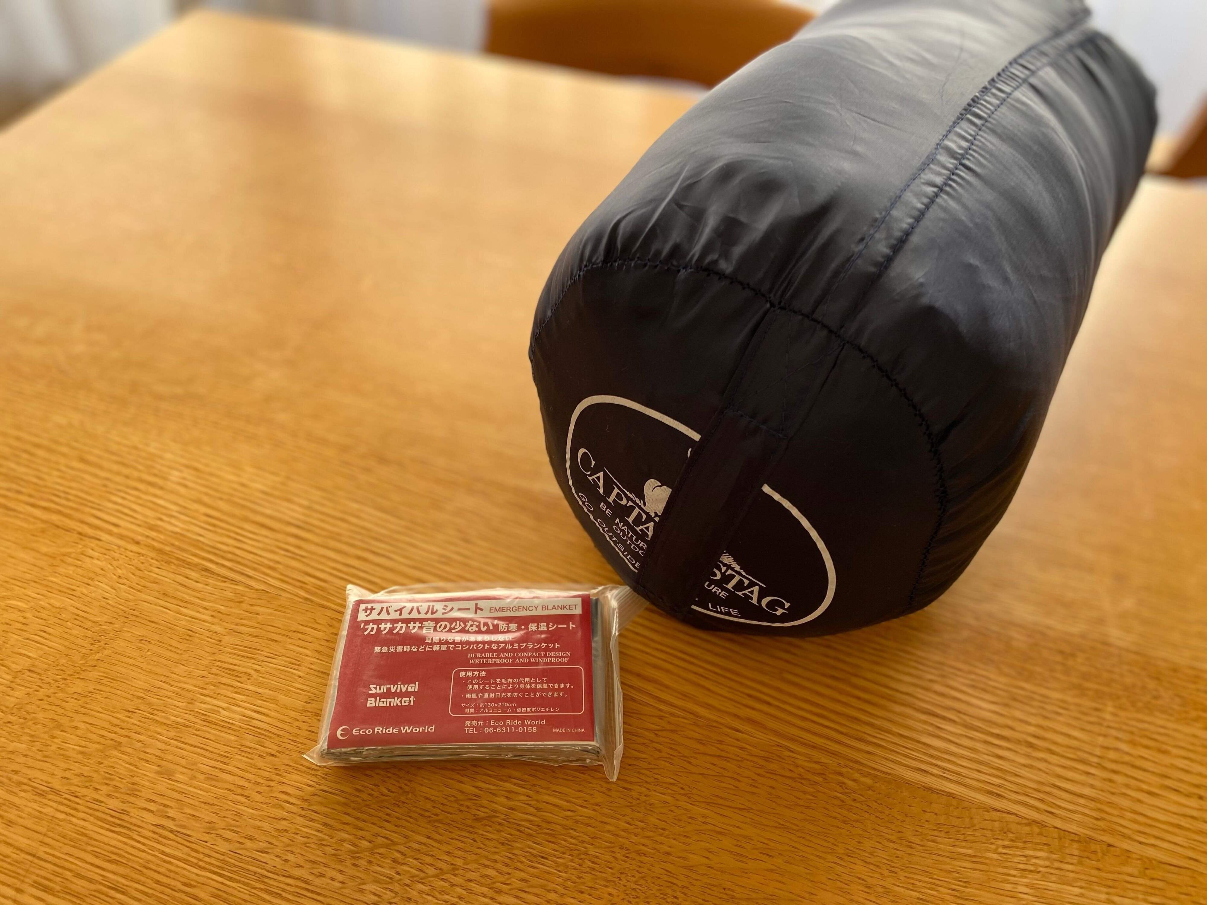 しかしこれだけでは心許ないので、キャンプ用の寝袋や古くなった防寒着・毛布・膝掛けなども車に載せてはいかがでしょうか。古くなったけど捨てるのは抵抗あるなといった感じのもので十分です。アルミブランケットとの重ね使いで保温効果が上がります。