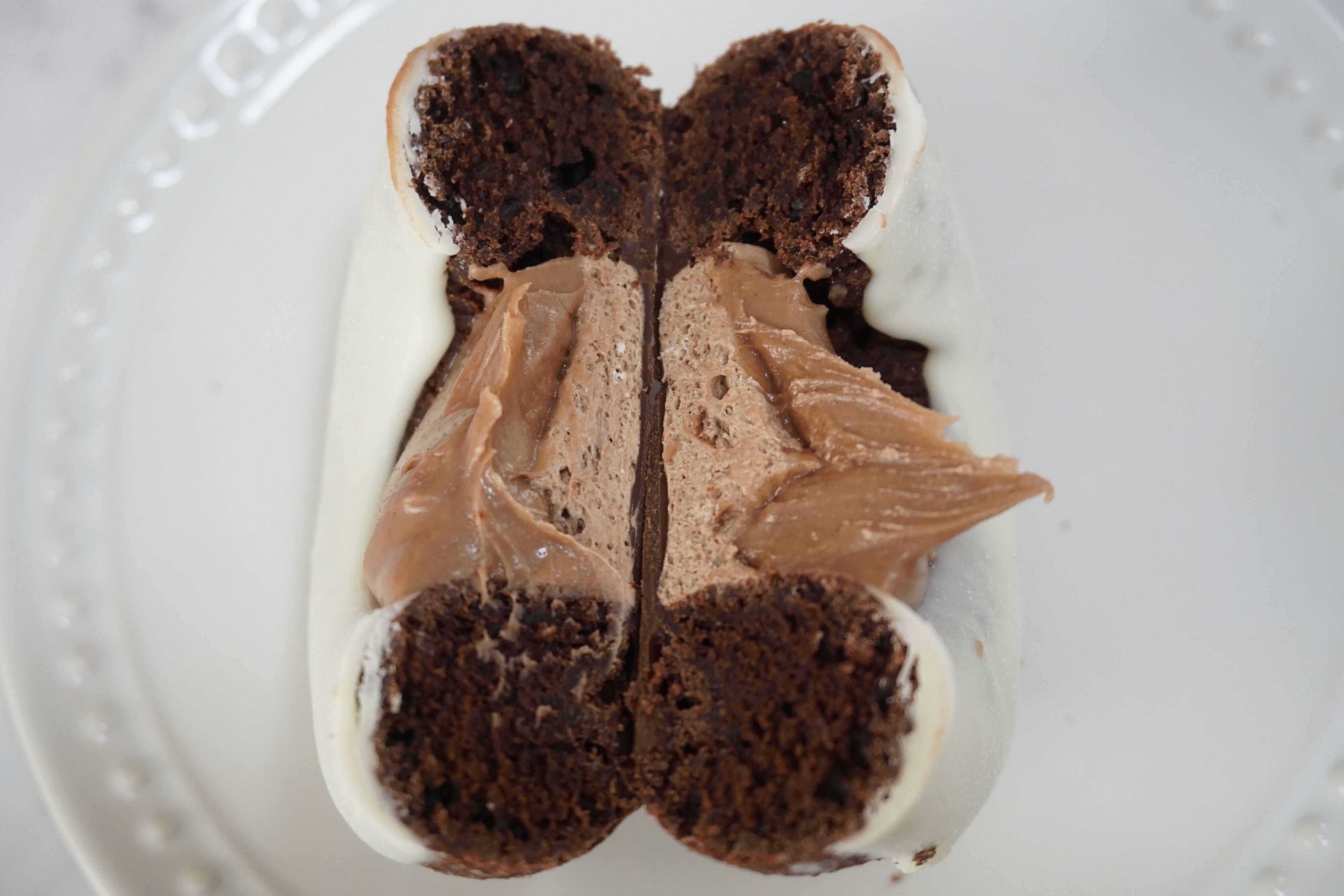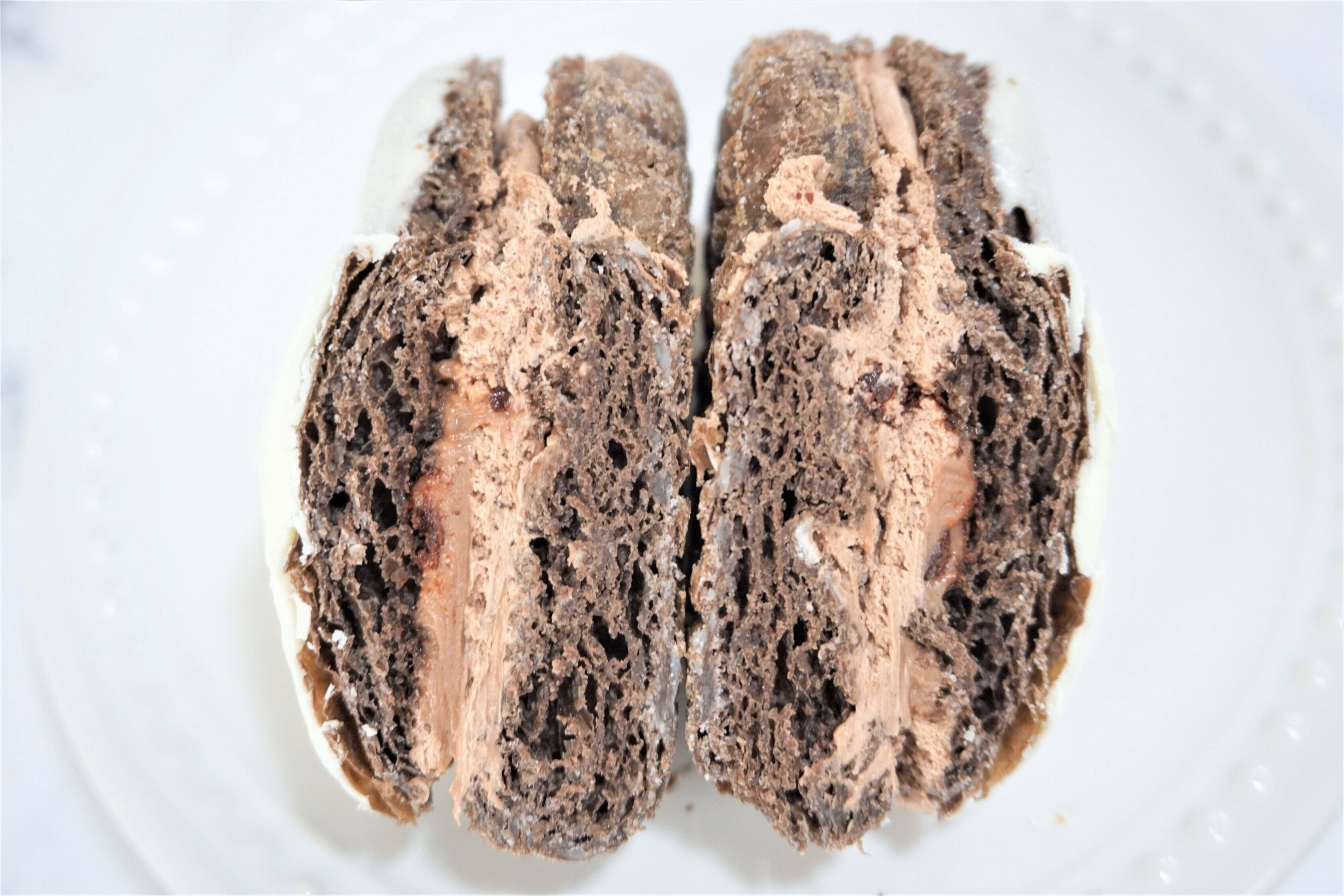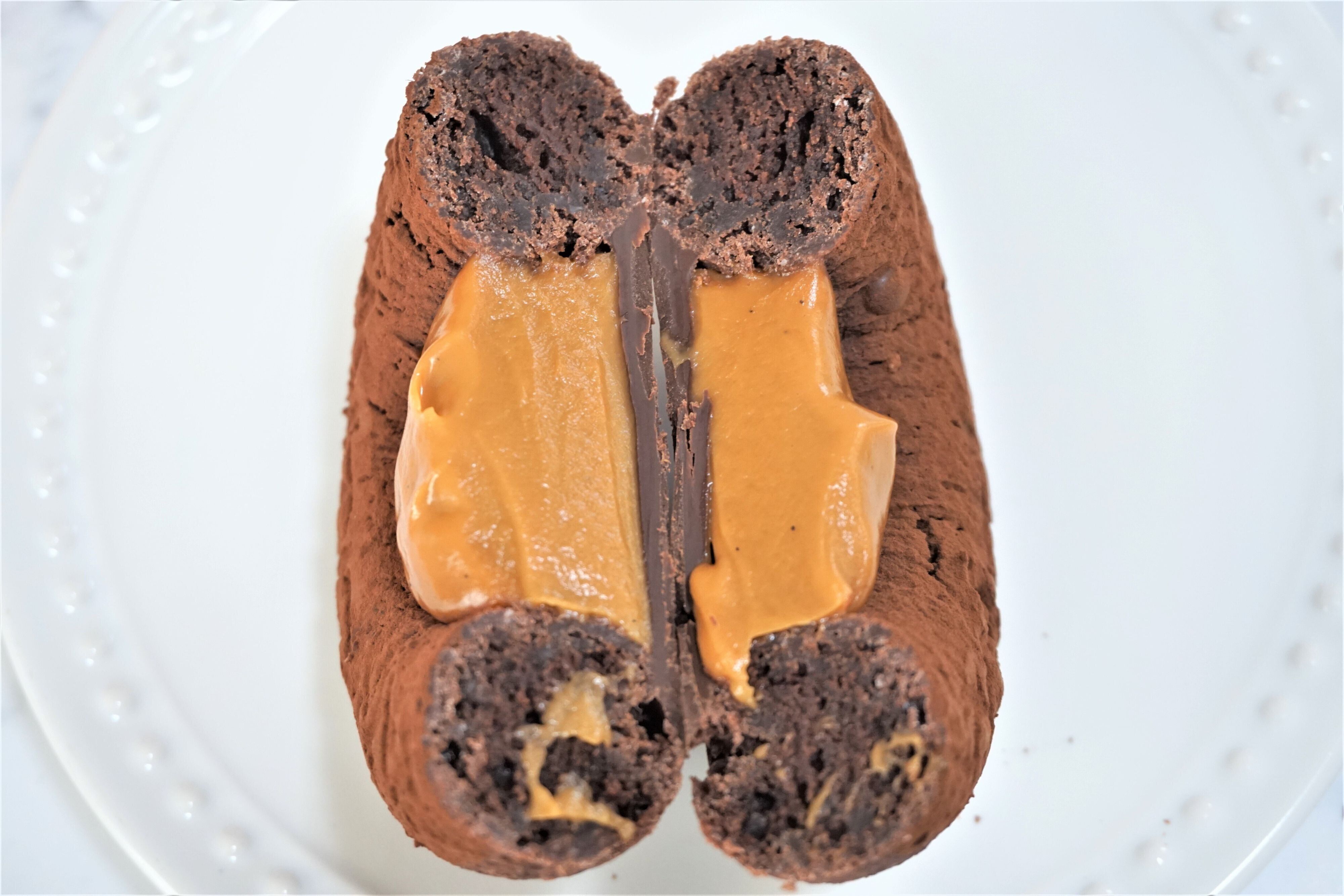 しっとり濃厚なチョコレートドーナツ生地の真ん中にガナッシュホイップ、ヘーゼルナッツクリームが入っています。
