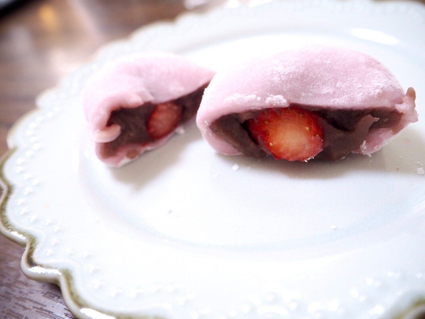 真ん中に入っているいちごは酸味もあり、甘い大福とよく合います。噛むとしっかりと果汁を感じられてみずみずしさがたまりません。
