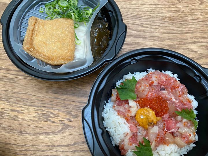平日の17時まで限定で、季節の天丼や旬の海鮮丼に、茶碗蒸しかあおさ入りの赤だしセットで500円!もちろんテイクアウトも可能です。