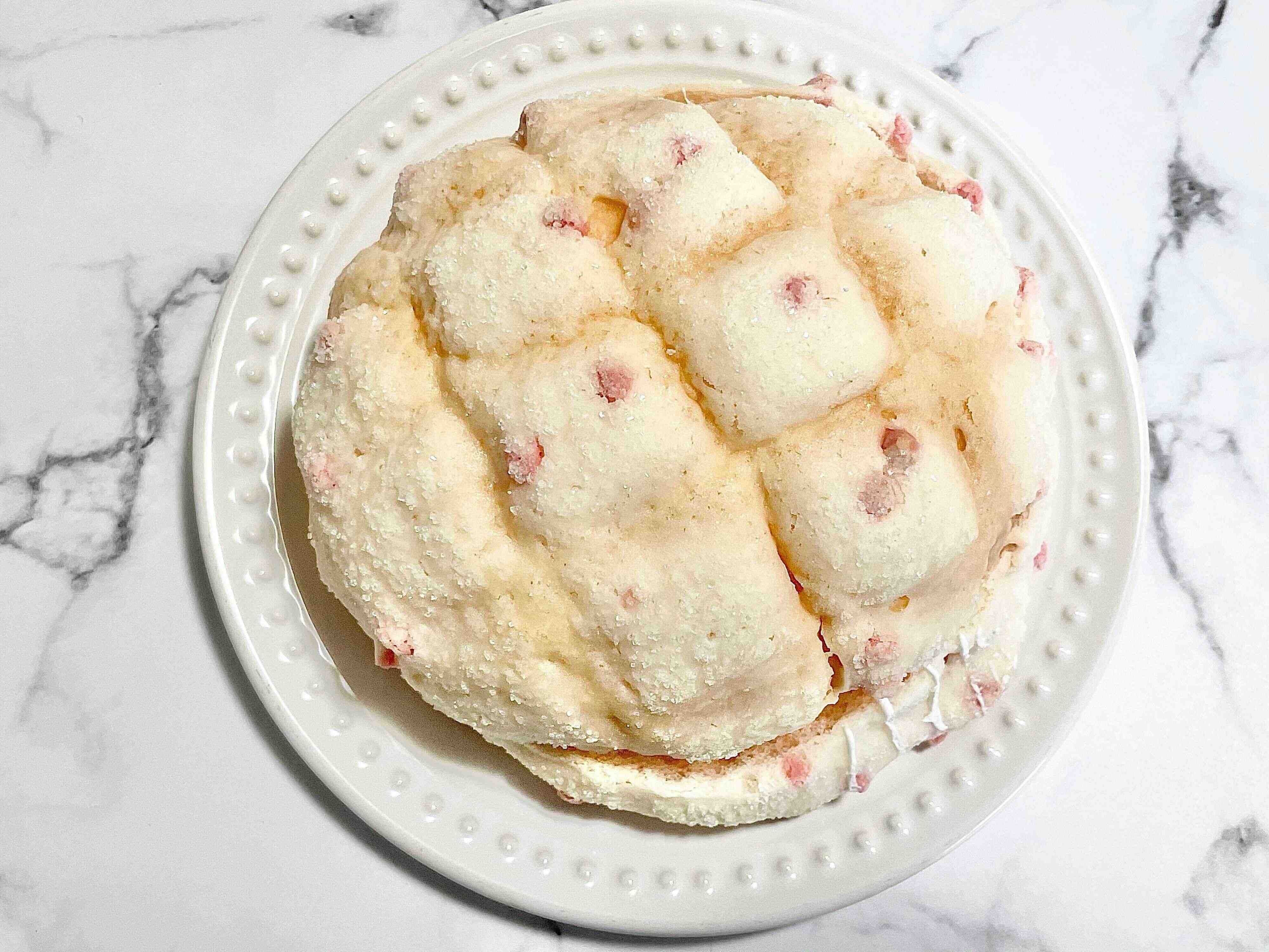 パンは温めて食べるのが好きですが、イチゴめろんぱんは常温のままでもおいしく食べられました。冷凍してメロンパンアイスにしてもおいしそうですが、この季節は寒いですね…。