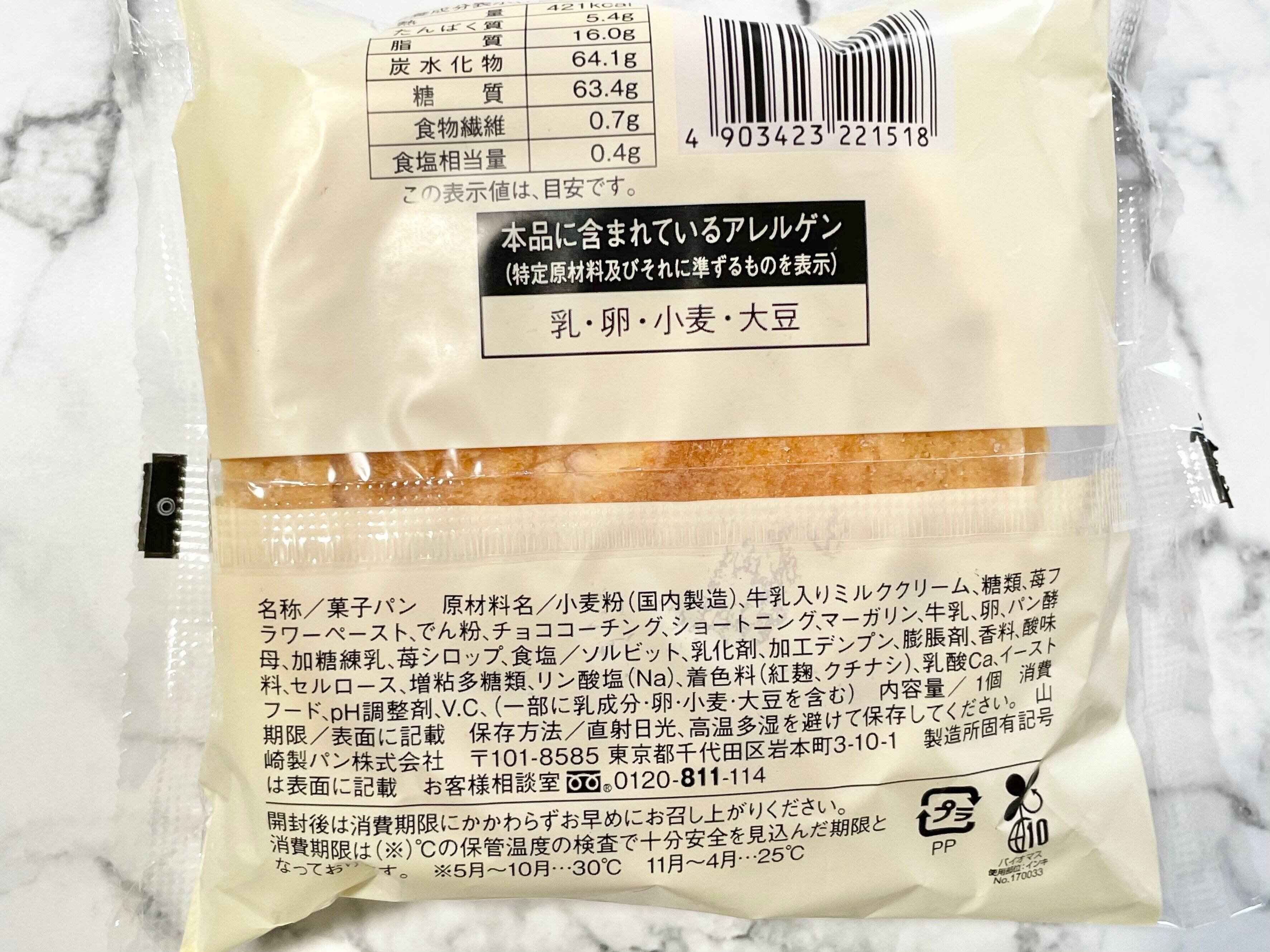 いちごクリームやミルクホイップが入ってる分、1個あたり421kcalとなかなかの高カロリーです。でもクリームの誘惑には勝てない …という方も多いのではないでしょうか?私もそのひとりです。